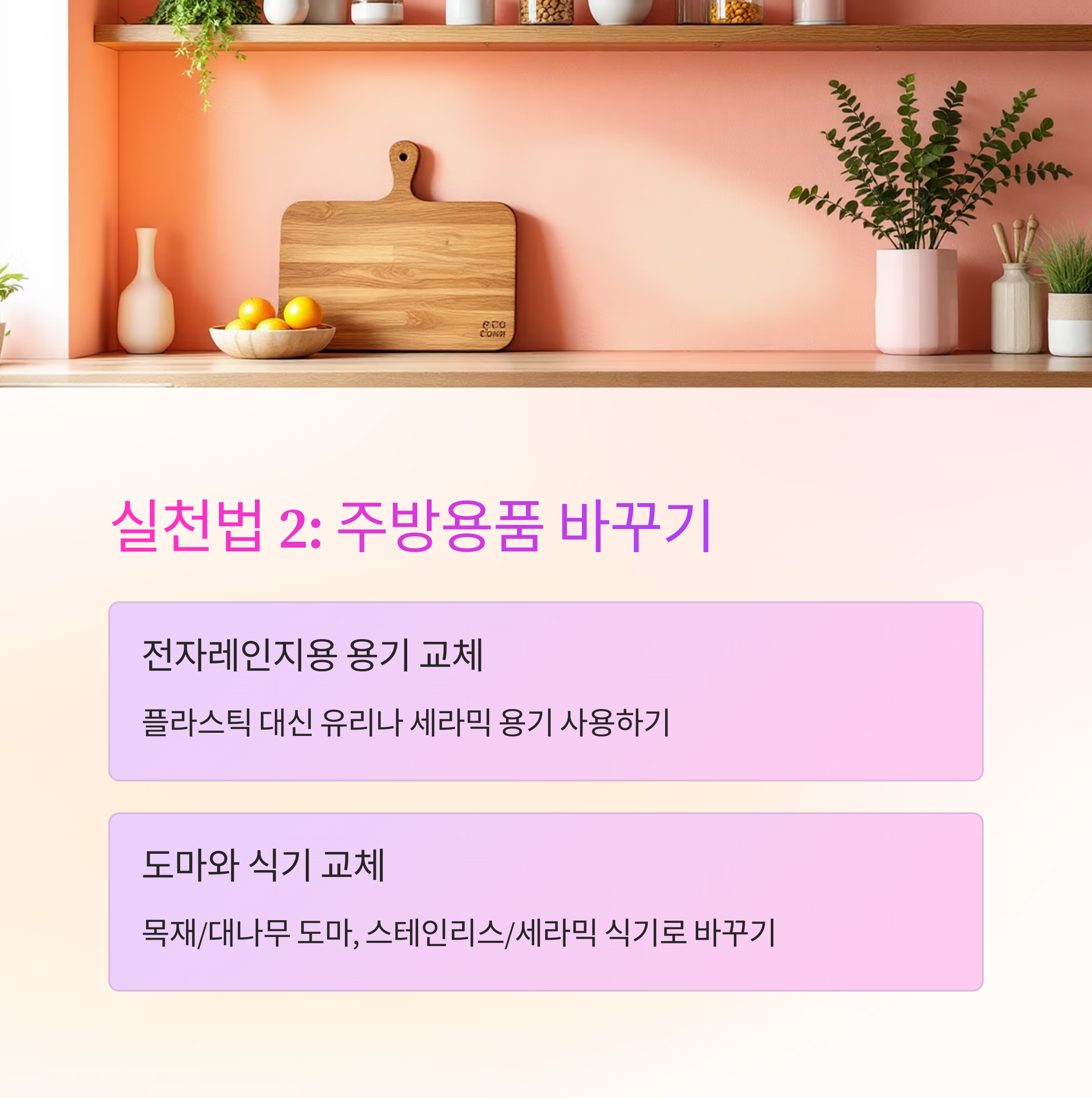 - 플라스틱 도마 → 목재/대나무 도마로 교체