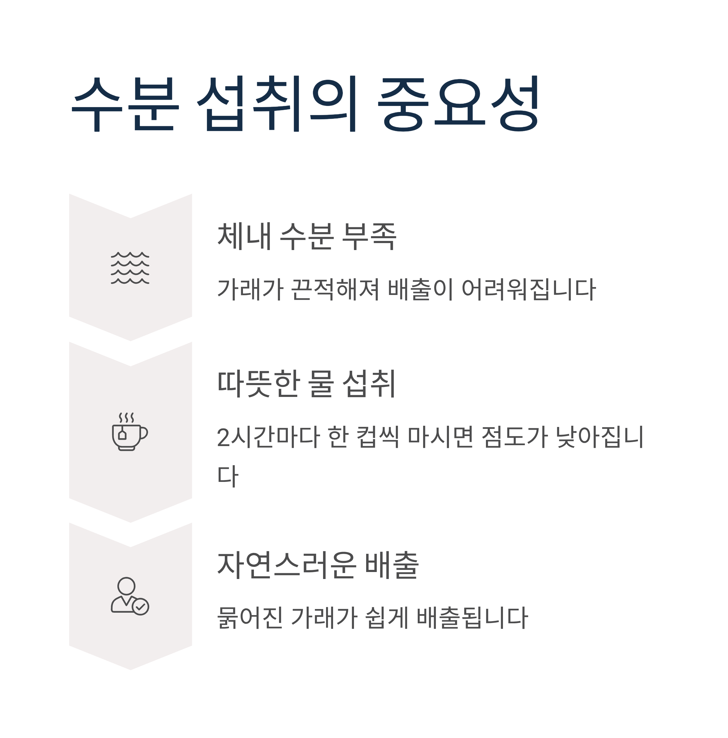 가래 제거의 가장 기본적이면서도 효과적인 방법입니다. 체내 수분이 부족하면 가래가 끈적해져 배출이 어려워집니다. 따뜻한 물이나 미지근한 차를 2시간마다 한 컵씩 마시면 가래의 점도가 낮아져 자연스럽게 배출됩니다.