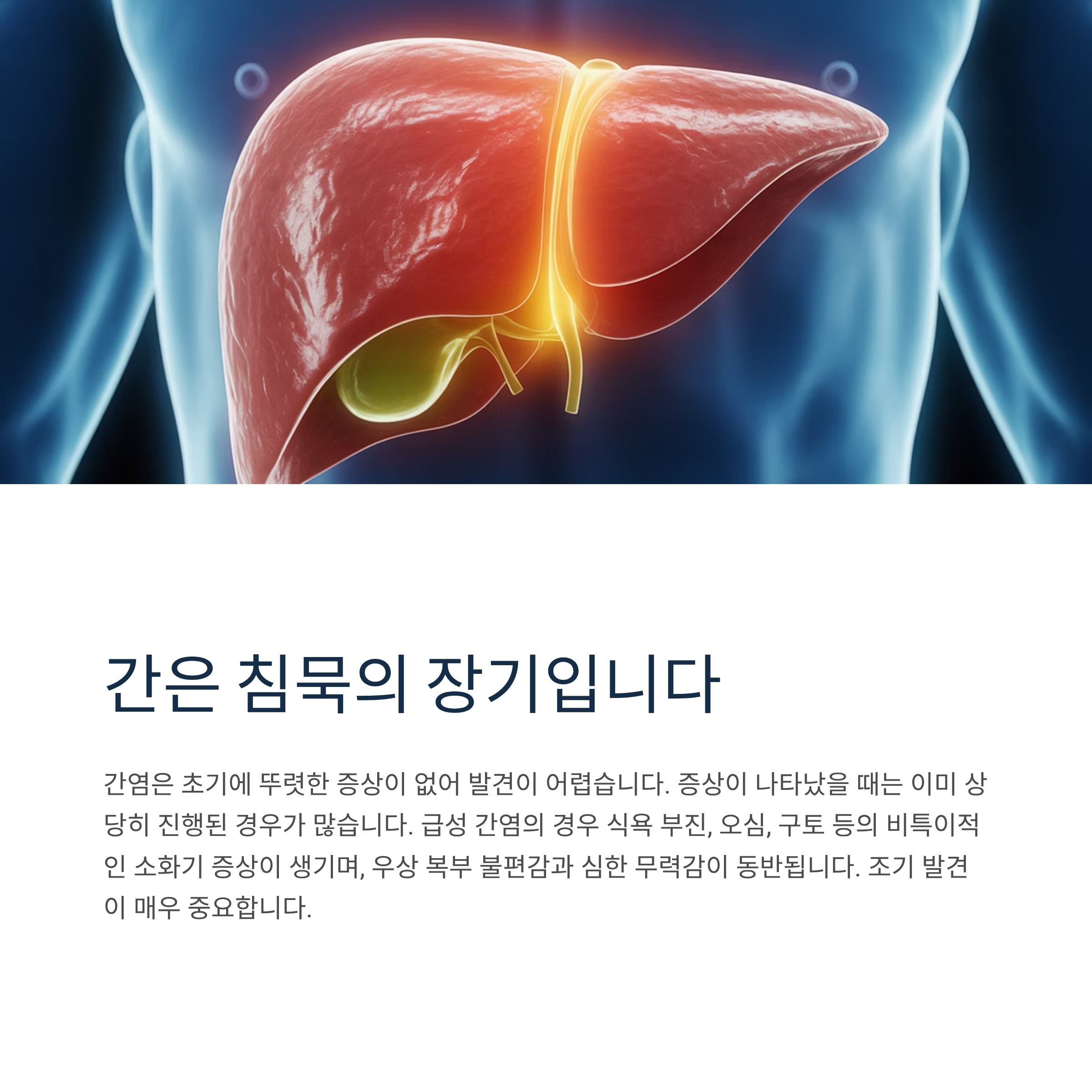 간은 침묵의 장기로 불리며, 증상이 나타났을 때는 이미 상당히 진행된 경우가 많아 조기 발견이 매우 중요합니다.