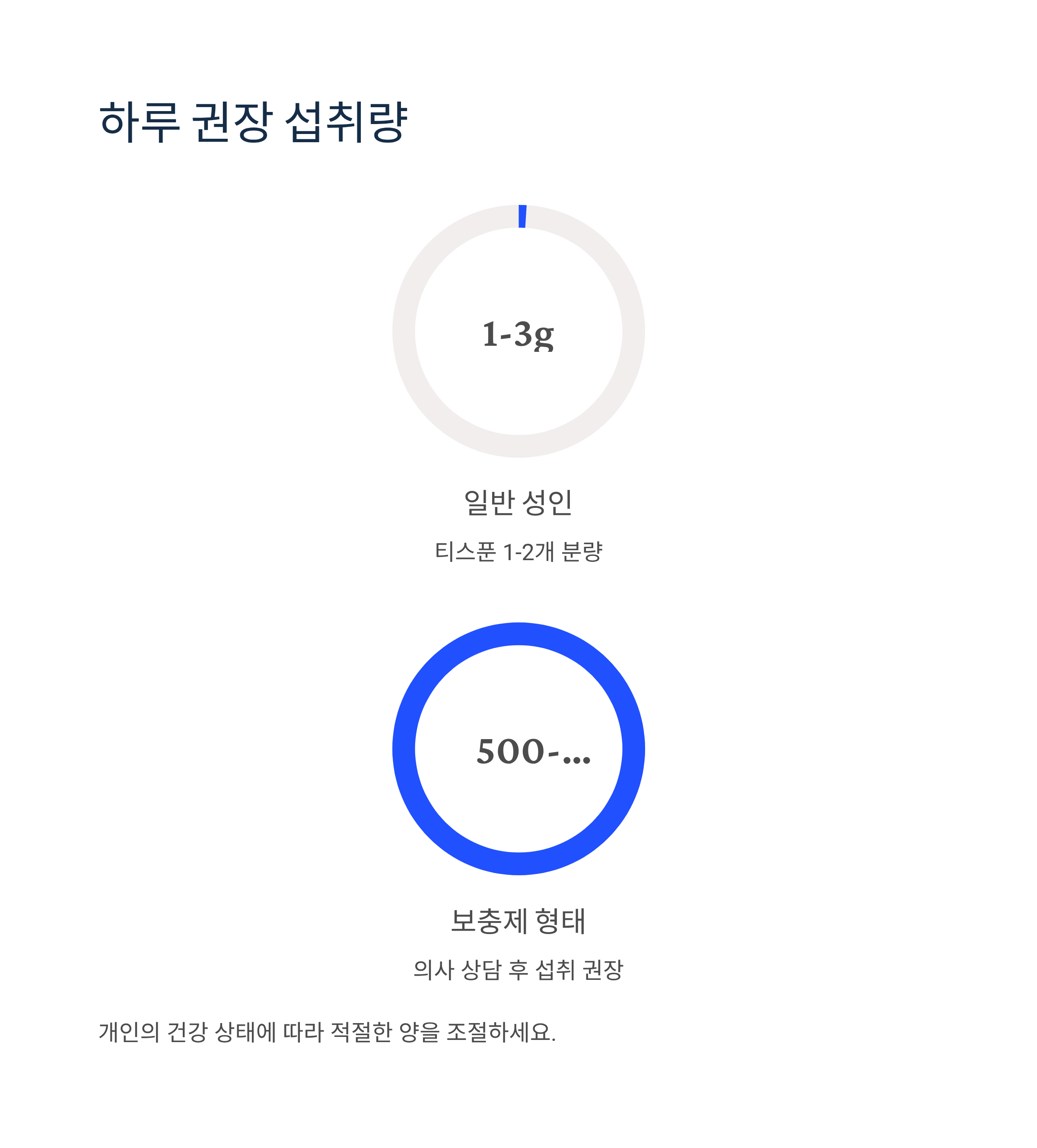 - 성인 기준: 하루 1-3g (티스푼 1-2개)