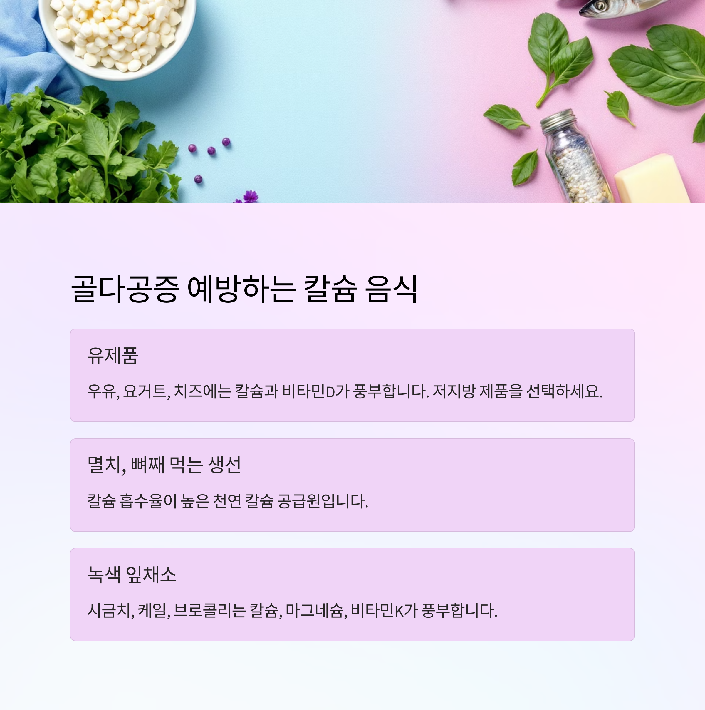 🦴 골다공증 예방하는 칼슘 풍부 음식