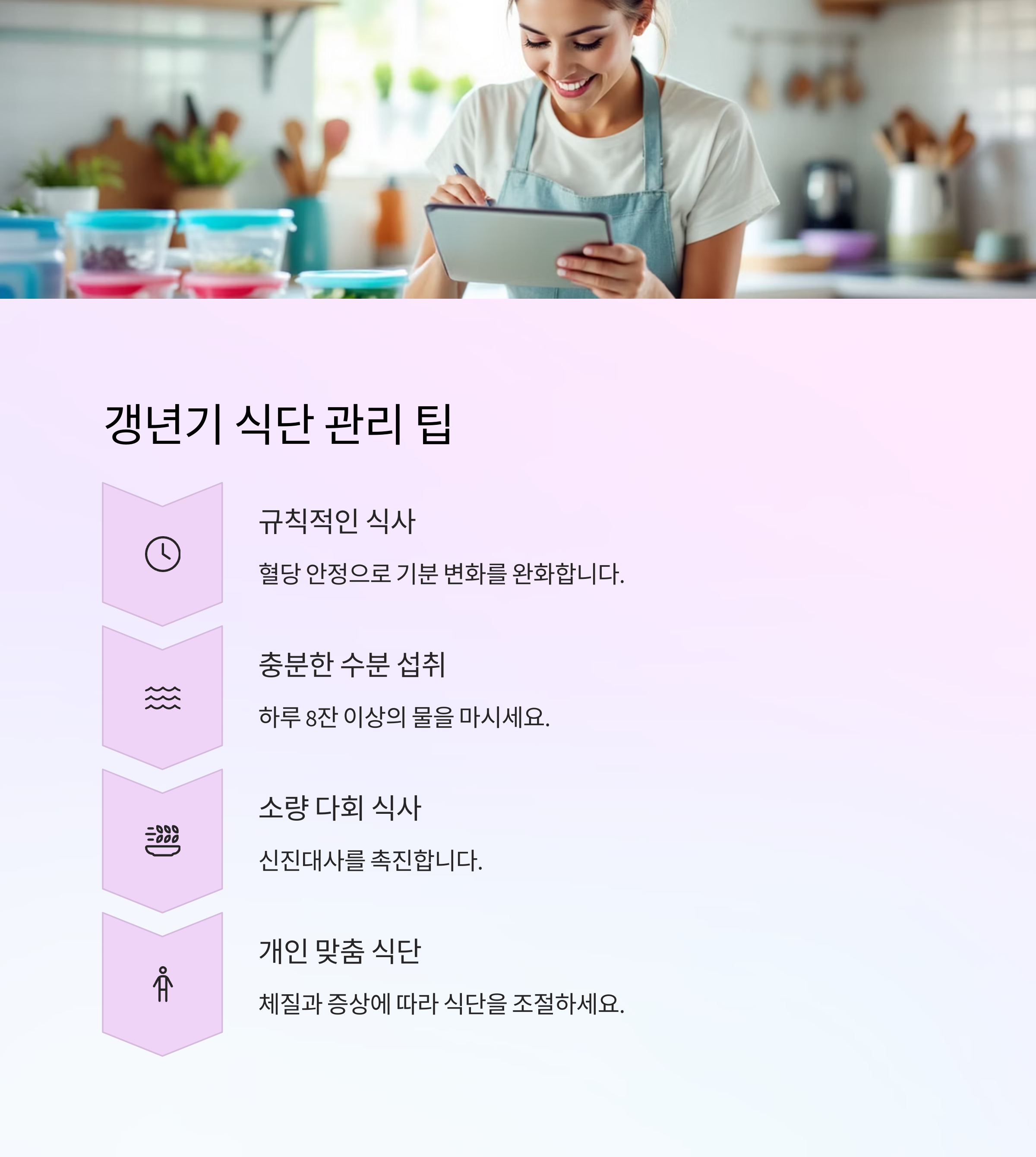 💡 갱년기 식단 관리 팁