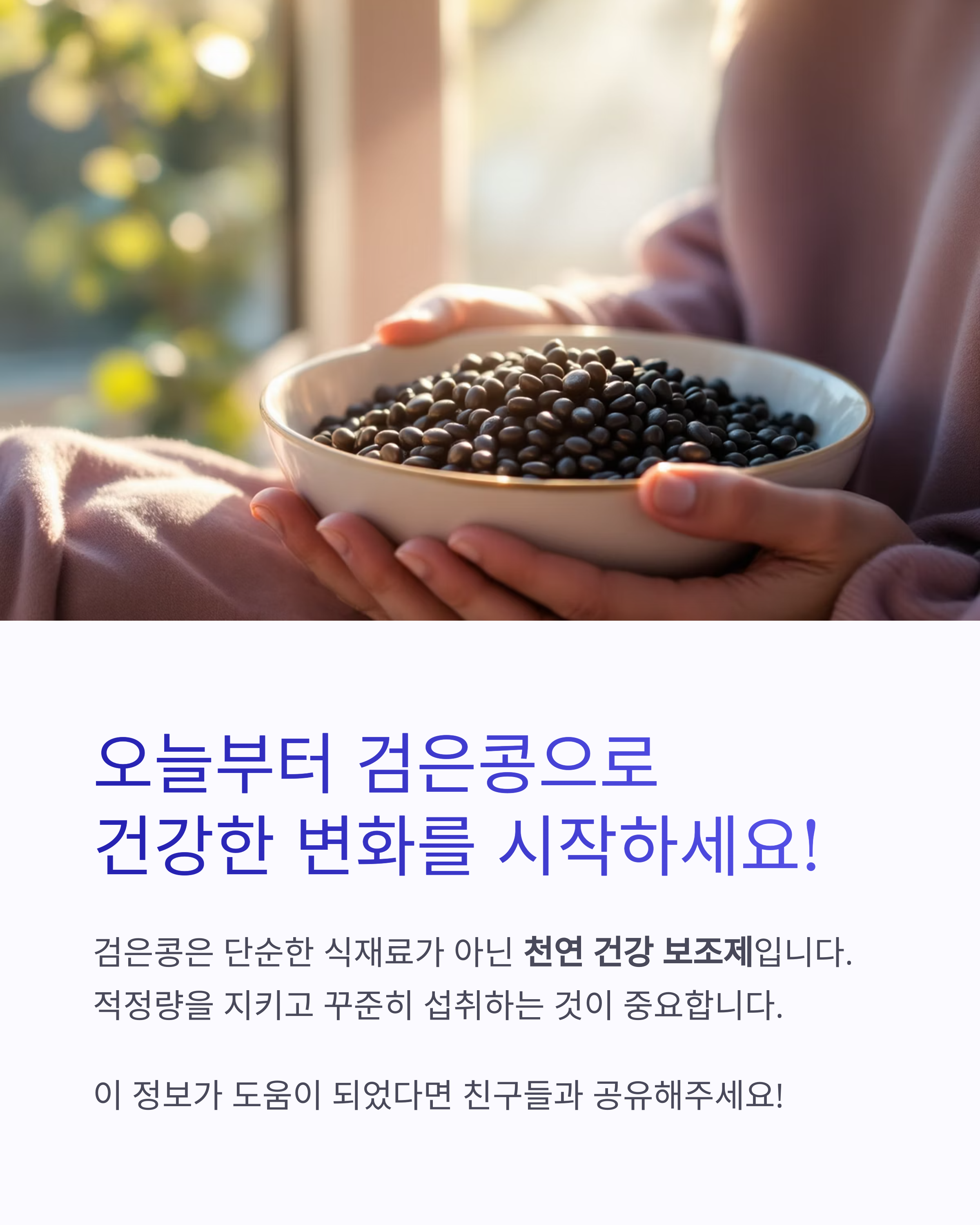 하지만 무엇보다 중요한 것은 적정량을 지키고 꾸준히 섭취하는 것입니다. 오늘부터라도 하루 한 줌의 검은콩으로 건강한 변화를 시작해보세요!