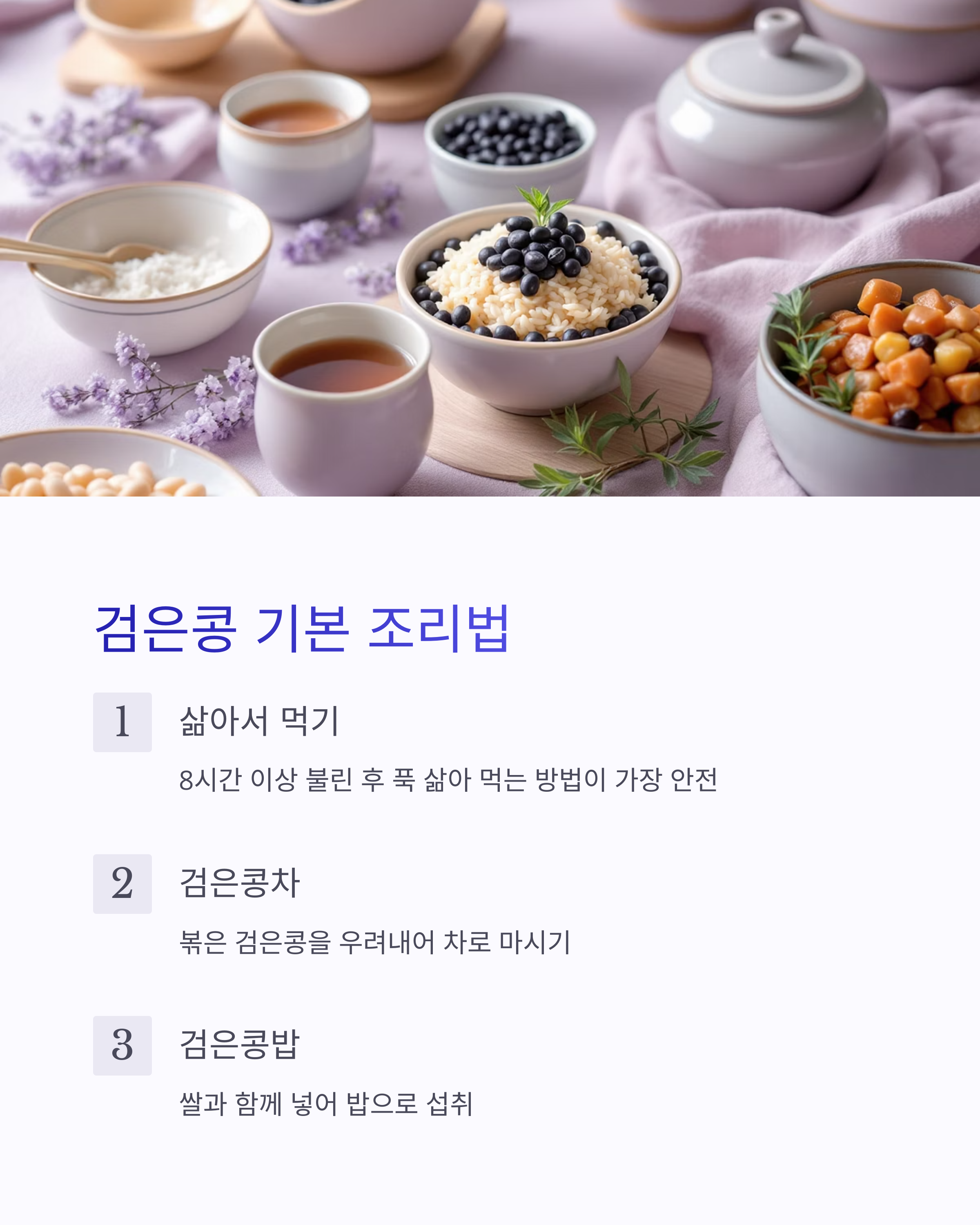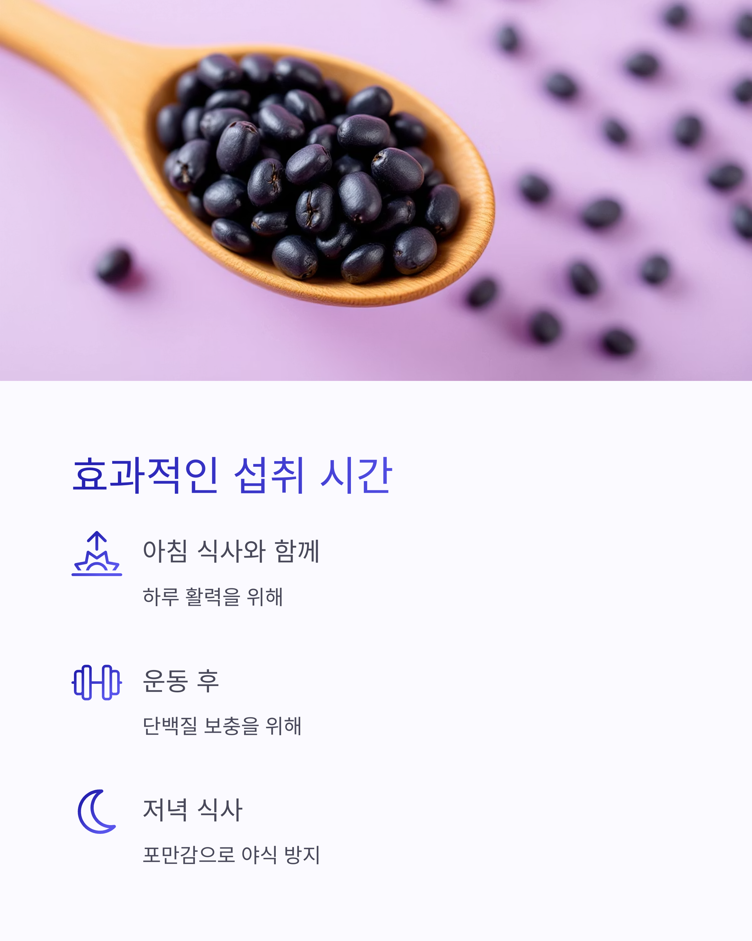 - 검은콩밥: 쌀과 함께 넣어 밥으로 섭취