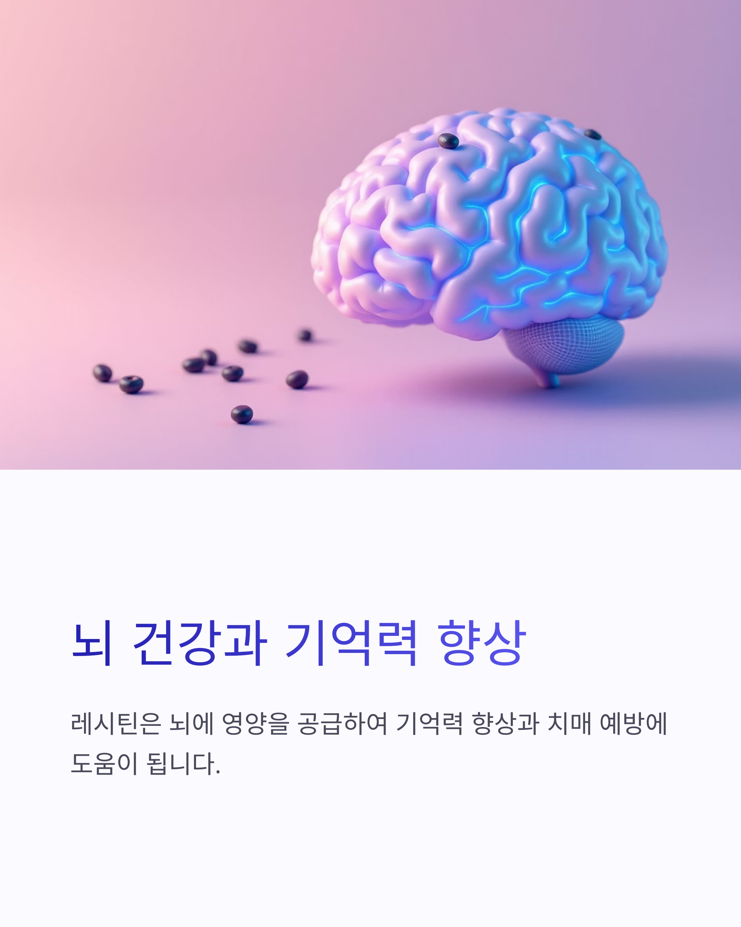 레시틴은 뇌에 영양을 공급하여 기억력 향상과 치매 예방에 도움이 됩니다.