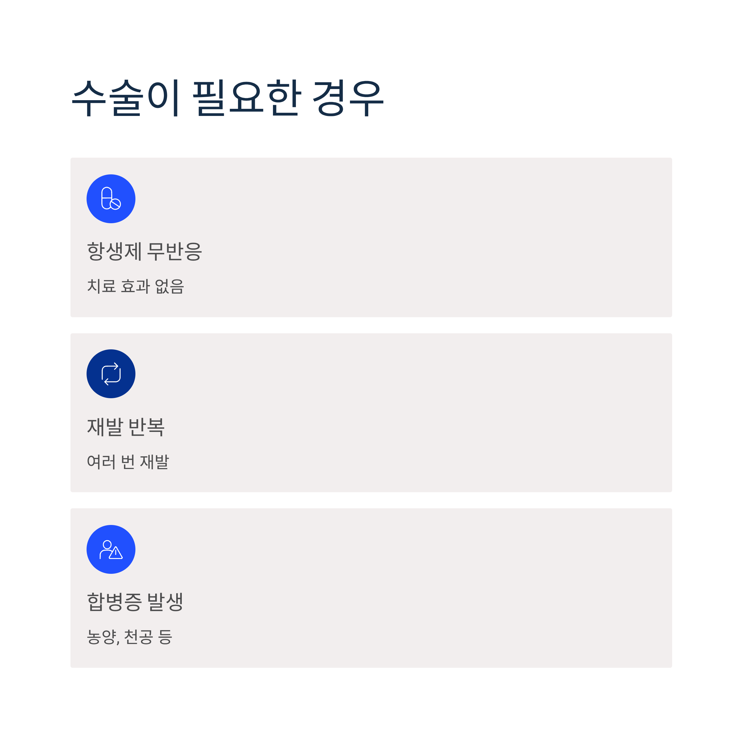 3단계: 합병증 발생 시 수술적 치료