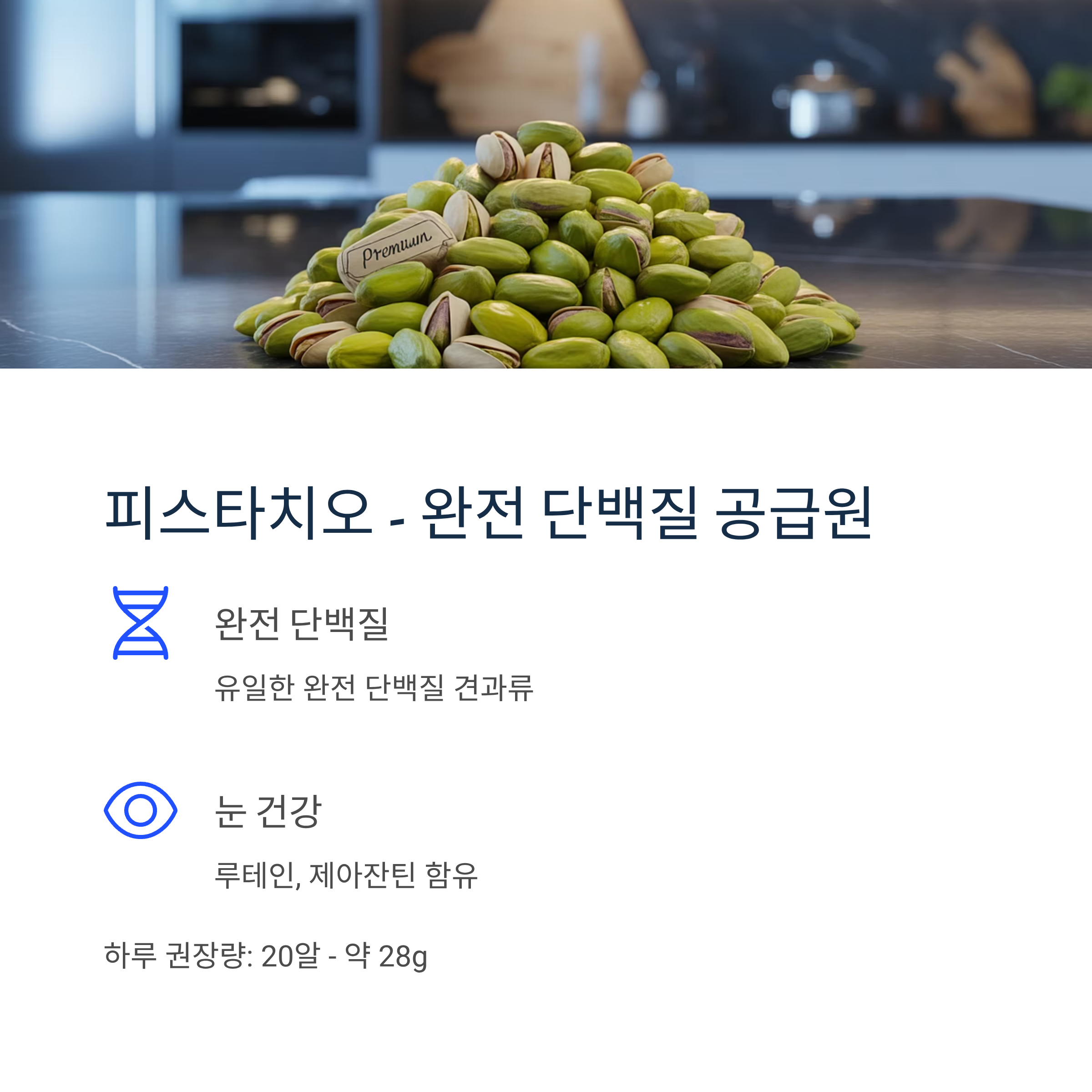 완전 단백질 제공 (피스타치오) 및 근육 건강 지원