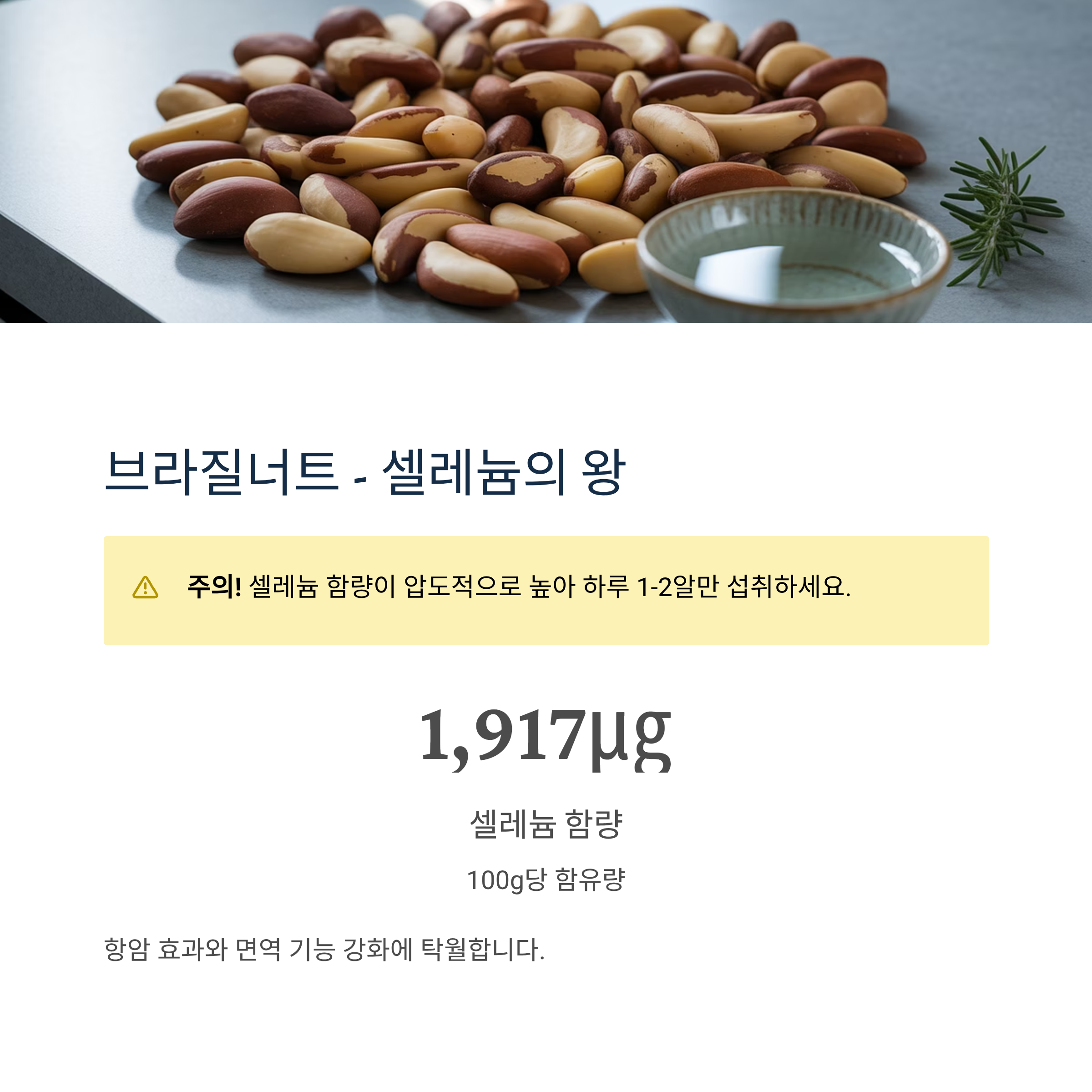 하루 권장량: 1-2알 (셀레늄 과다 섭취 주의)