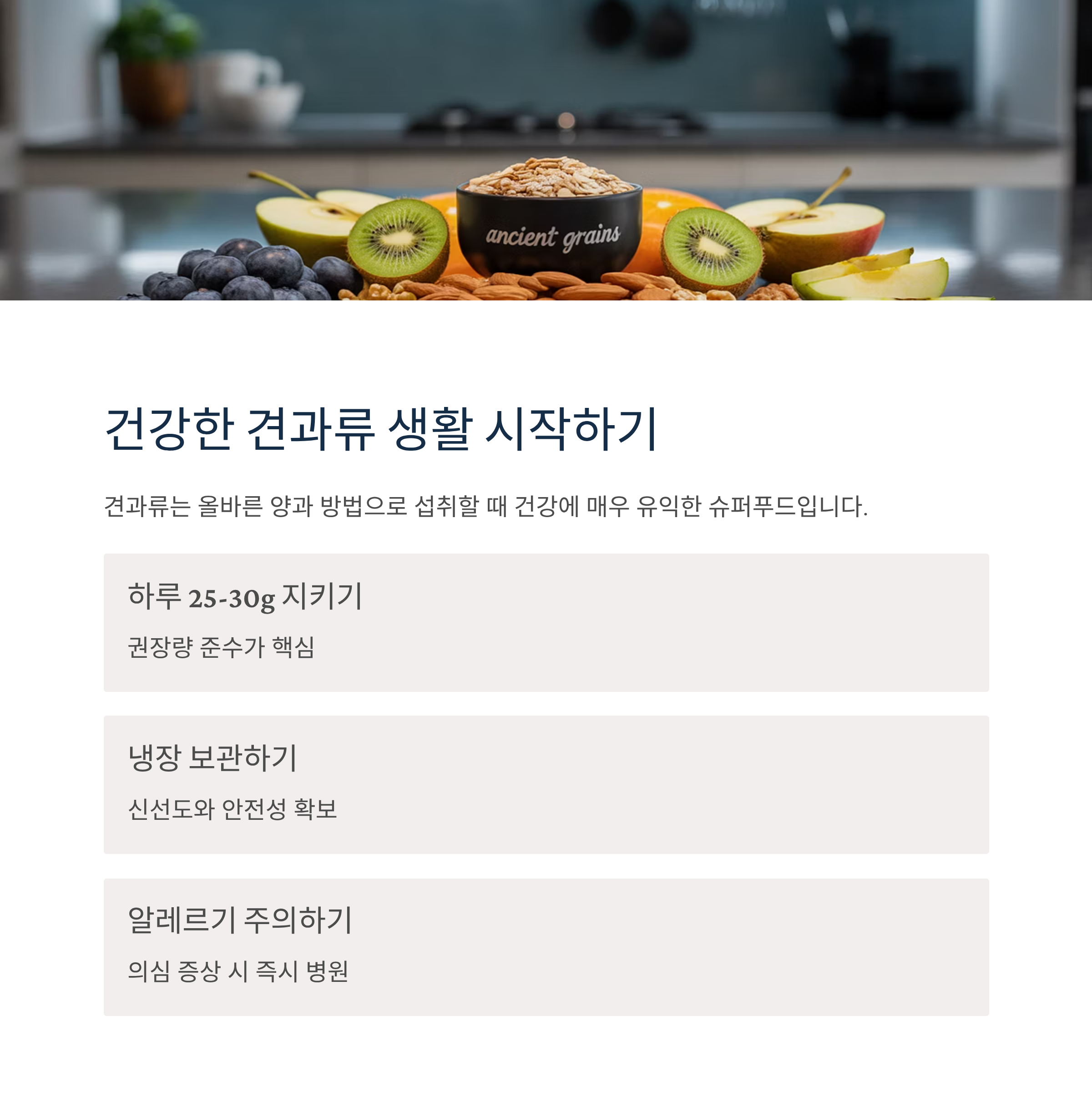 - 다양한 견과류 혼합: 영양소 균형 및 시너지 효과