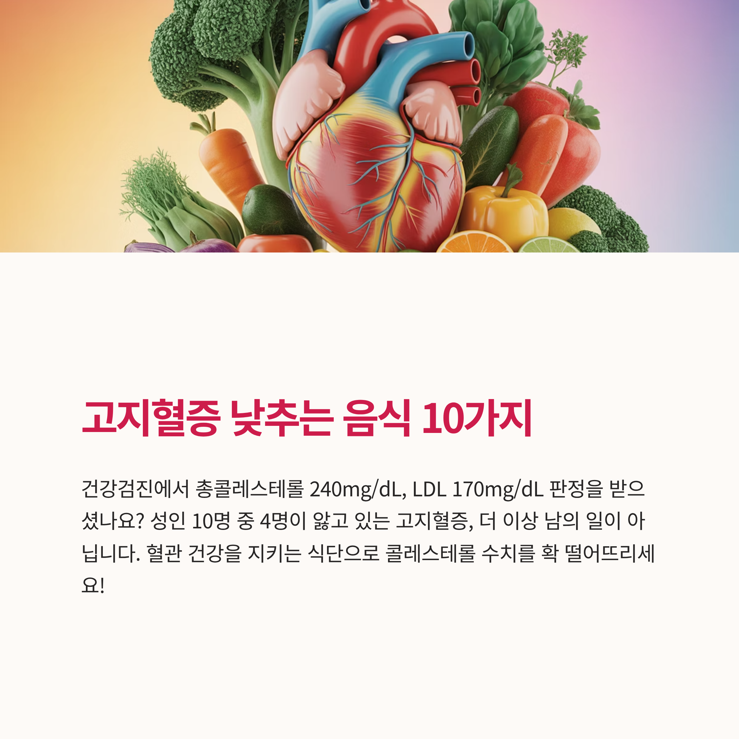 콜레스테롤 수치 관리, 오늘부터 시작하세요! 건강한 혈관이 건강한 삶의 시작입니다.
