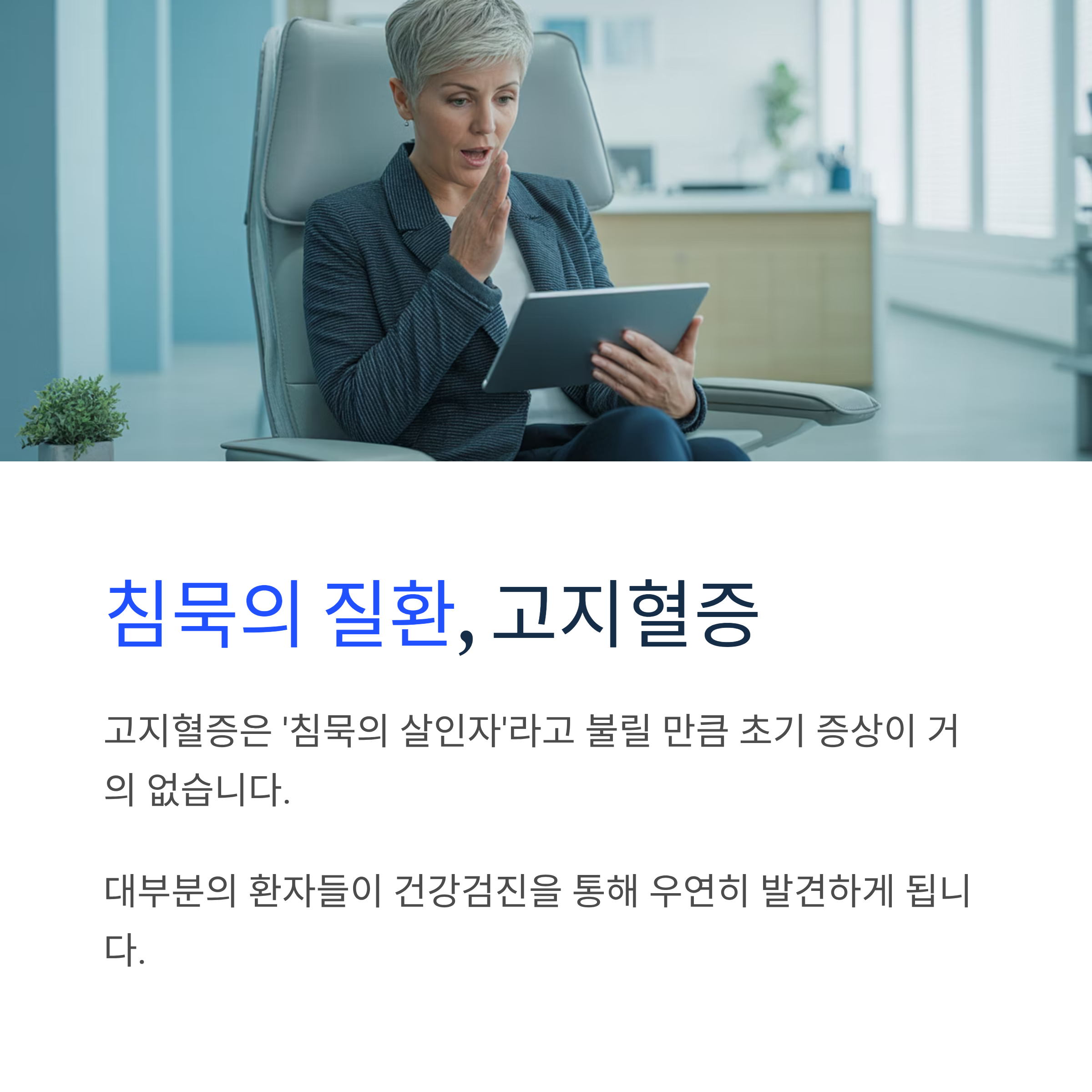 고지혈증은 '침묵의 살인자'라고 불릴 만큼 초기 증상이 거의 없습니다. 대부분의 환자들이 건강검진을 통해 우연히 발견하게 됩니다.