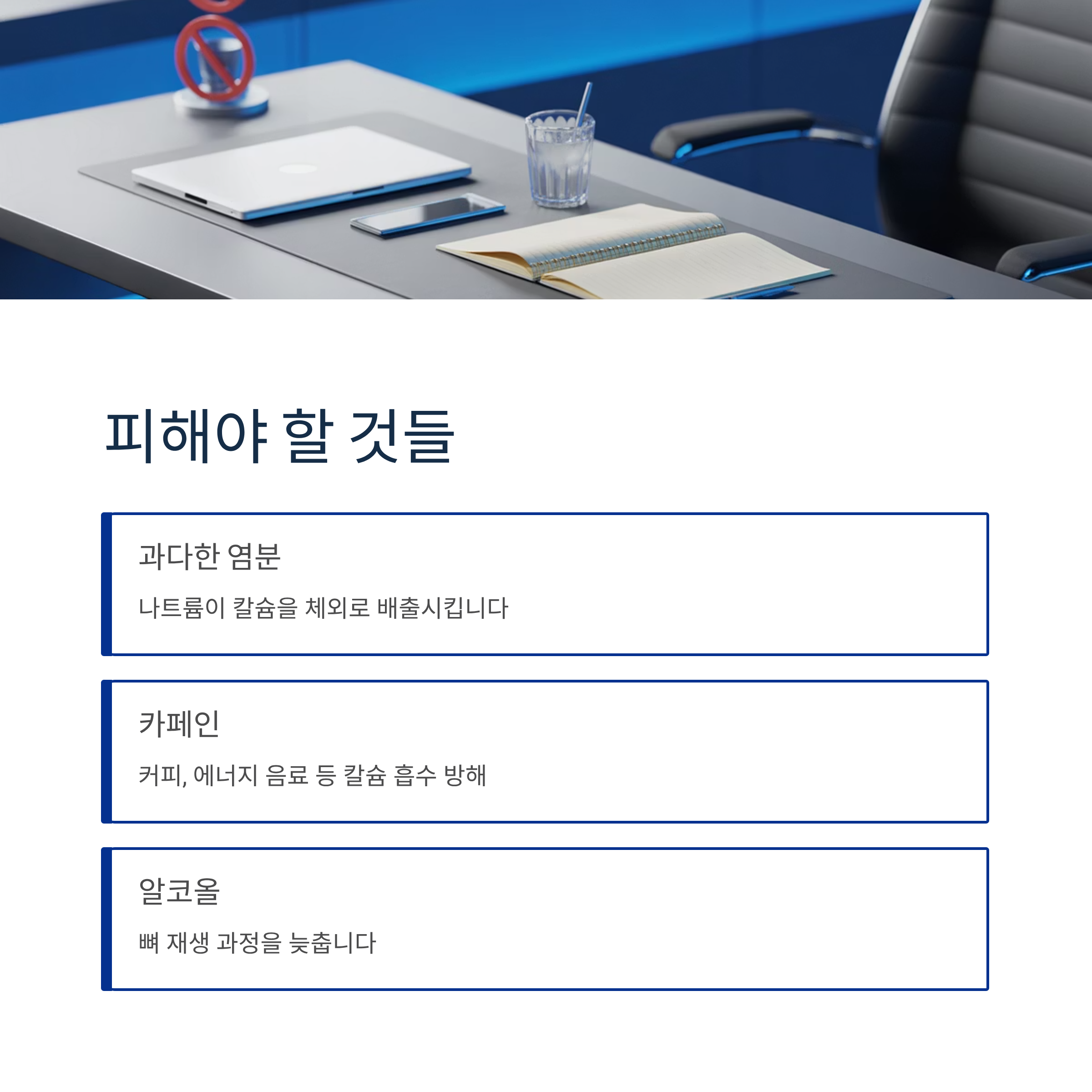 - 카페인·술 제한 - 칼슘 배출을 증가시킵니다
