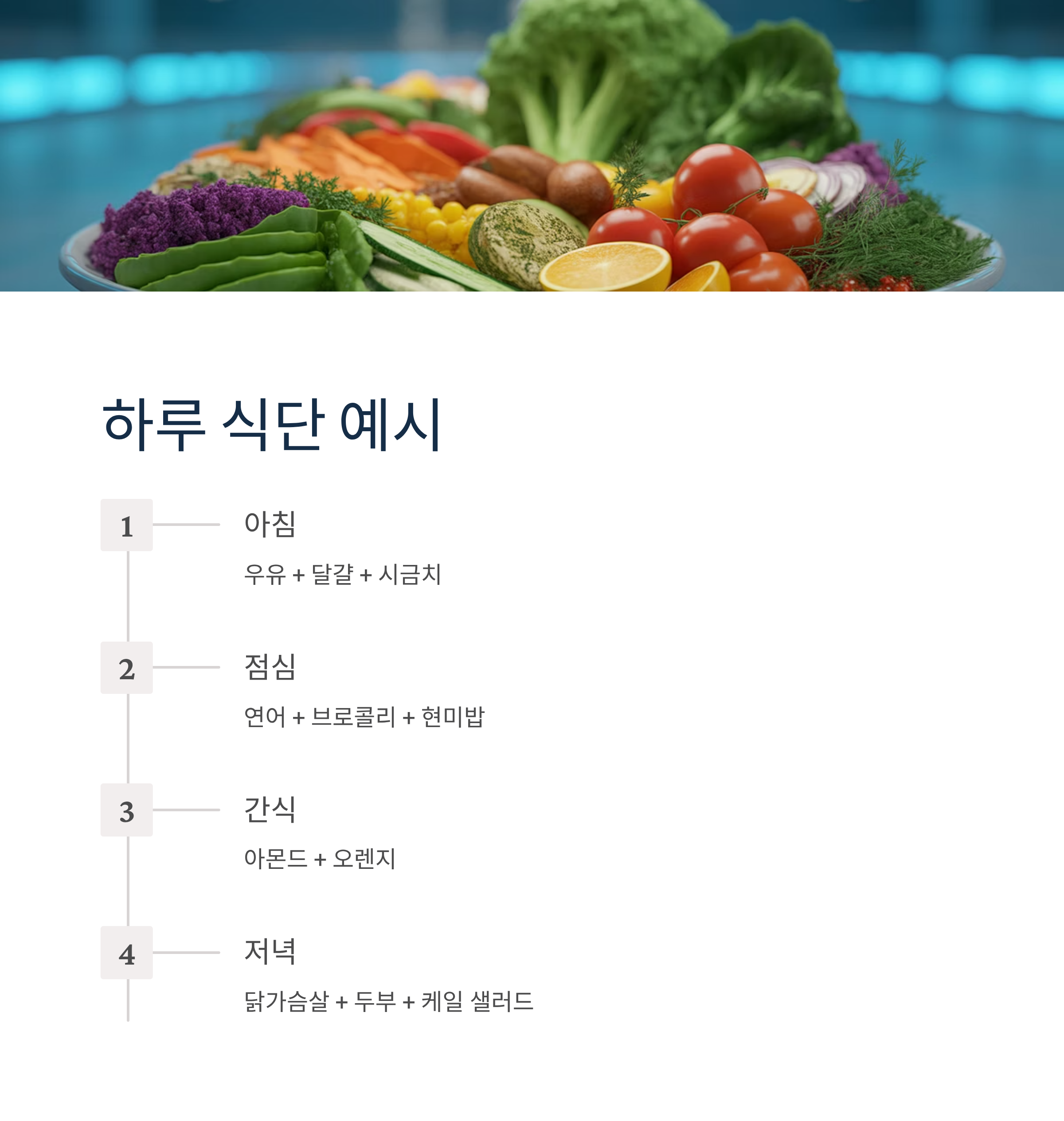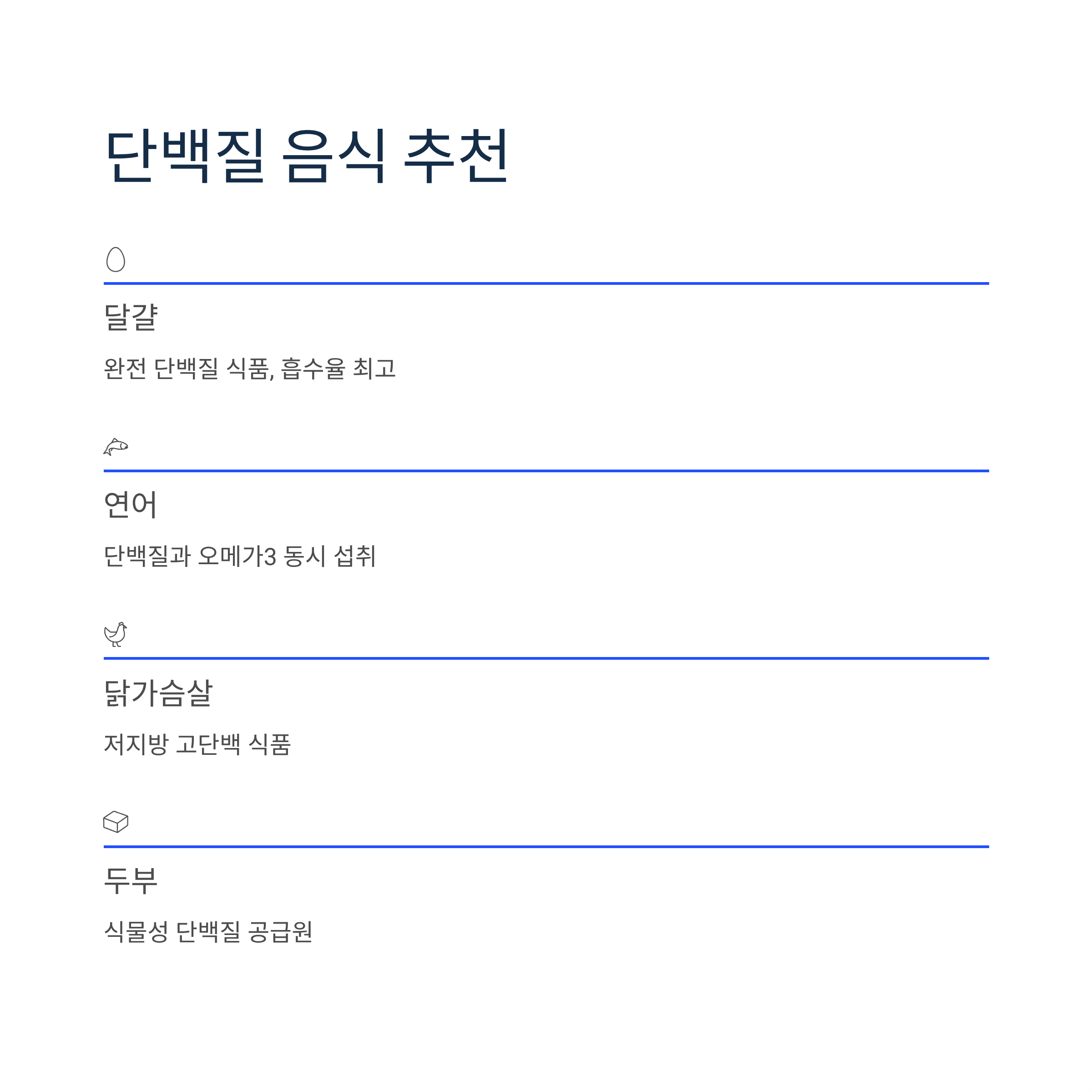 - 단백질 충분히 - 하루 체중 1kg당 1.5g 이상 섭취
