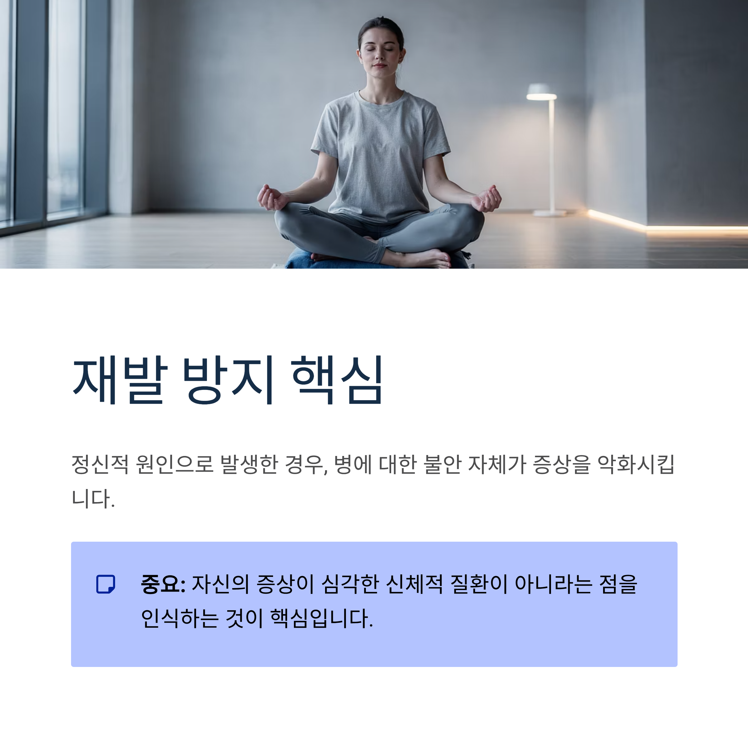 본 콘텐츠는 의학 정보 제공을 목적으로 하며, 진단이나 치료를 대체할 수 없습니다. 증상이 지속되면 반드시 의료기관을 방문하시기 바랍니다.