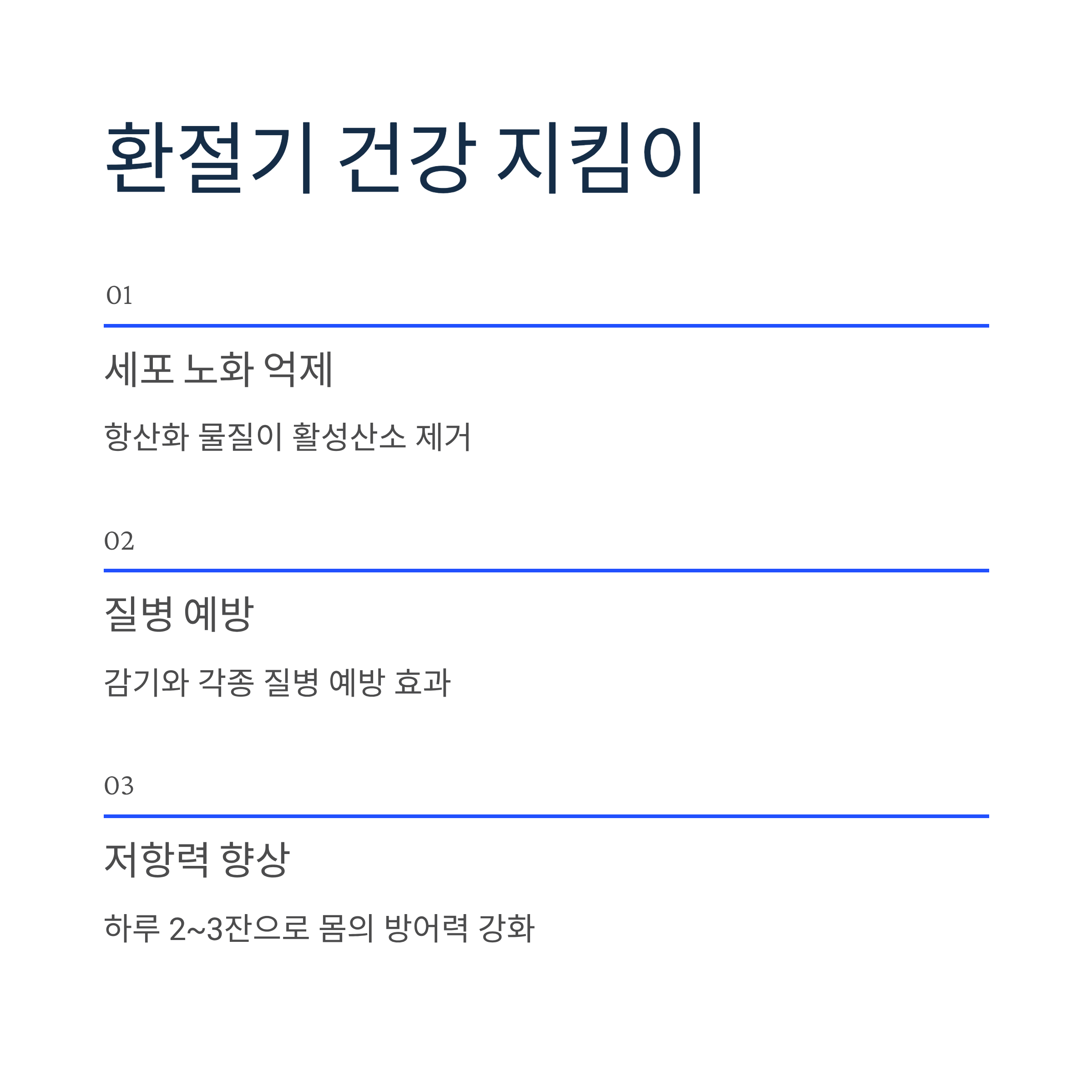 본 콘텐츠는 일반적인 건강 정보 제공을 목적으로 작성되었으며, 의학적 진단이나 치료를 대체할 수 없습니다. 개인의 건강 상태에 따라 효과가 다를 수 있으며, 질병이 있거나 약물 복용 중인 경우 반드시 전문의와 상담 후 섭취하시기 바랍니다.