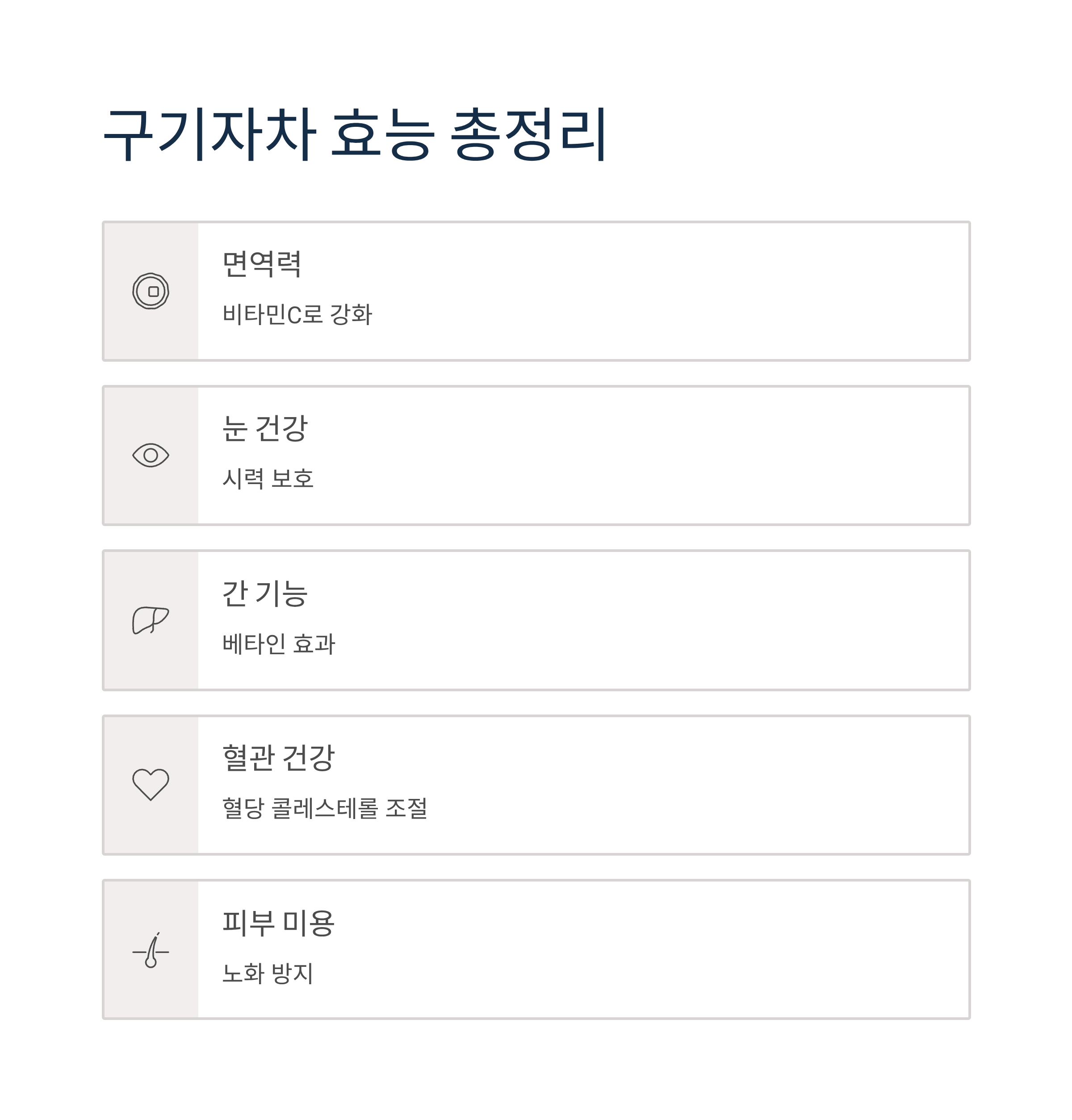 구기자에 풍부한 베타카로틴과 지아잔틴 성분은 눈 건강에 특히 중요합니다. 장시간 스마트폰과 컴퓨터 사용으로 지친 현대인의 눈을 보호하고, 노인성 시력 감퇴와 백내장 초기 증상 개선에 도움을 줍니다. 자외선과 산화 스트레스로부터 눈 조직을 보호하며, 안구 건강 유지에 최고의 약재로 손꼽혀 왔습니다.