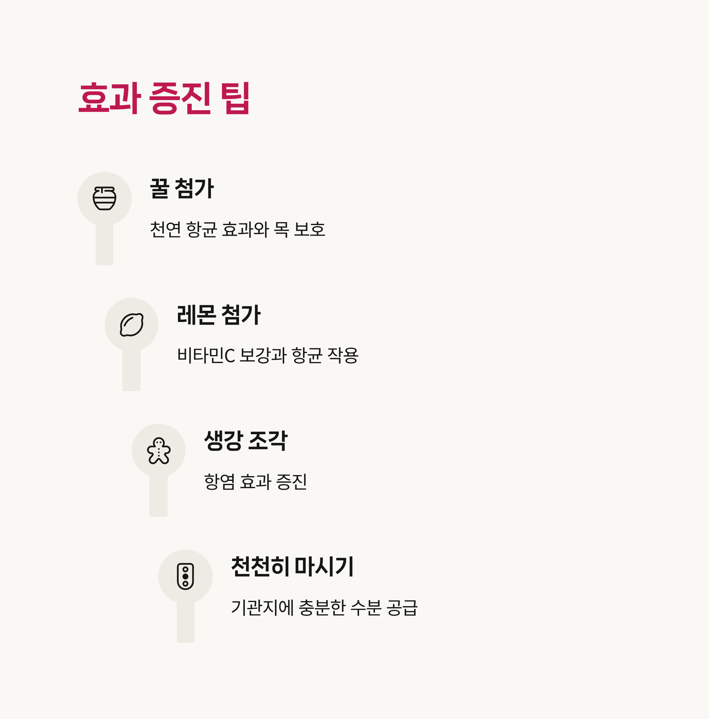 - 꿀 첨가: 천연 항균 효과와 목 보호