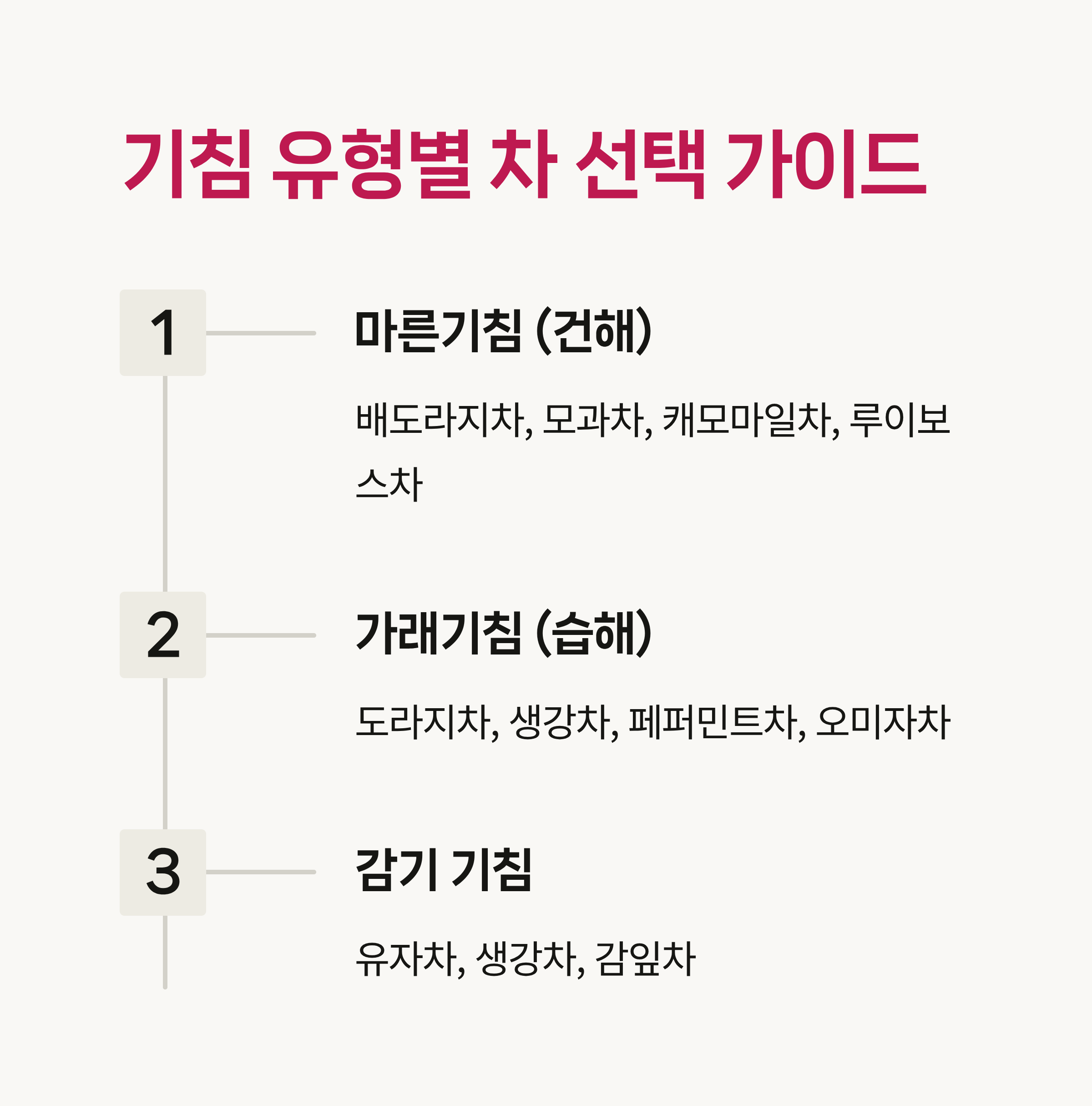 중요한 것은 자신의 기침 유형에 맞는 차를 선택하고 꾸준히 마시는 것입니다. 단순히 증상만 억제하는 것이 아니라, 기관지를 근본적으로 건강하게 만들어 재발을 방지하는 것이 진정한 치료입니다.