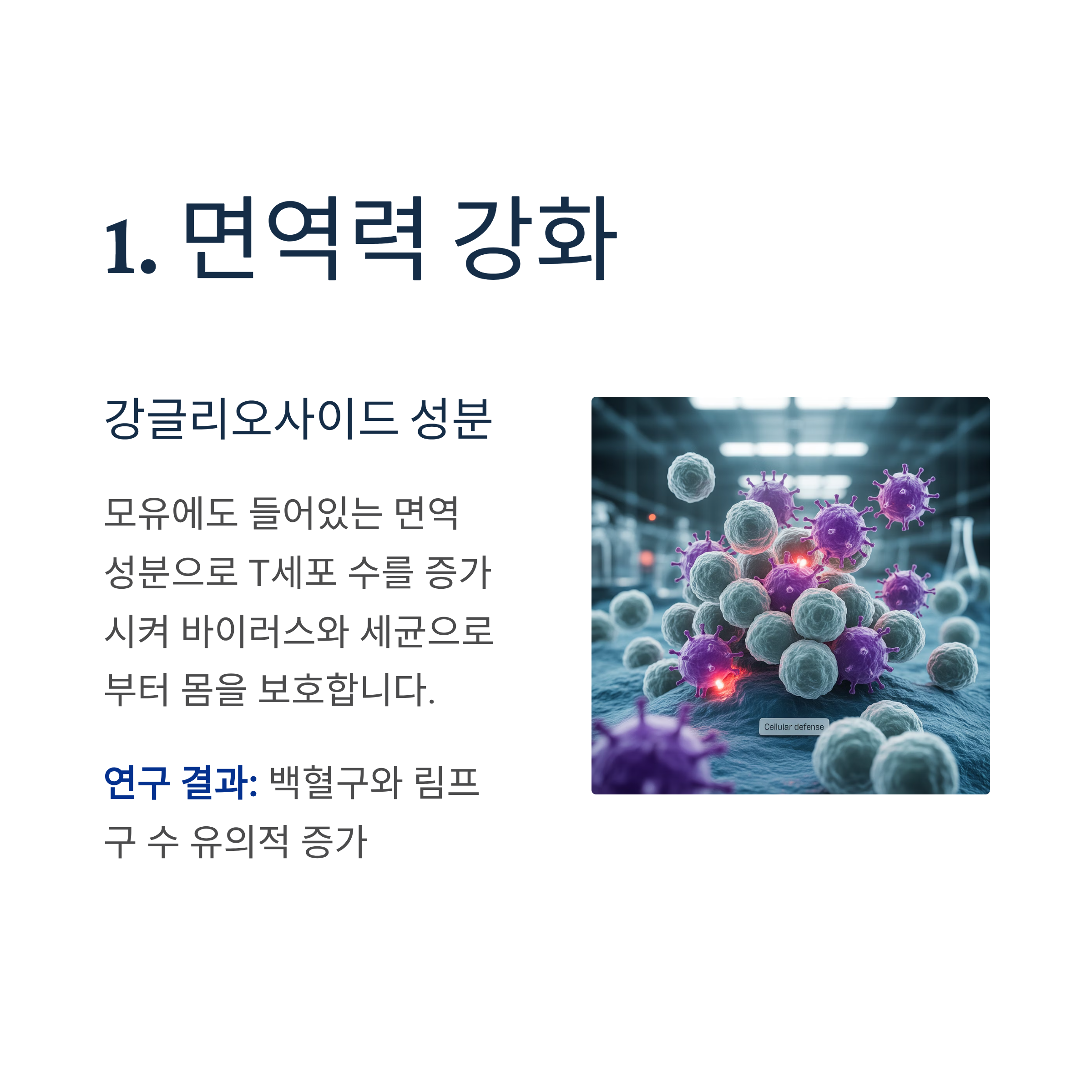 녹용에 함유된 강글리오사이드 성분은 모유에도 들어있는 면역 성분으로, T세포의 수를 증가시켜 바이러스나 세균으로부터 몸을 보호합니다. 실제 연구에서 녹용 추출물을 투여한 결과 백혈구와 림프구 수가 유의적으로 증가했다는 결과가 확인되었습니다.