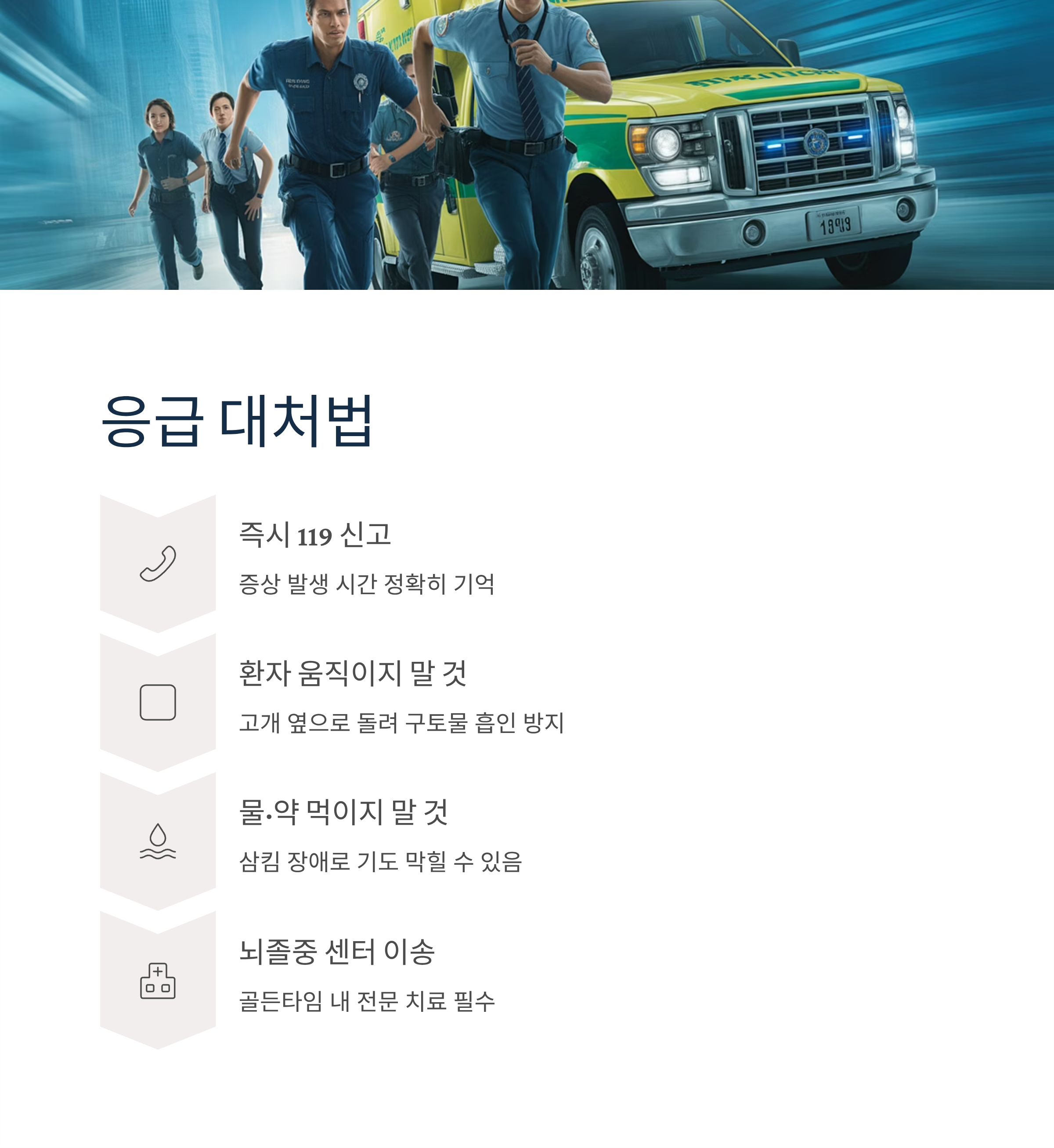 - 가장 가까운 뇌졸중 센터로 이송 - 골든타임 내 전문 치료 필수