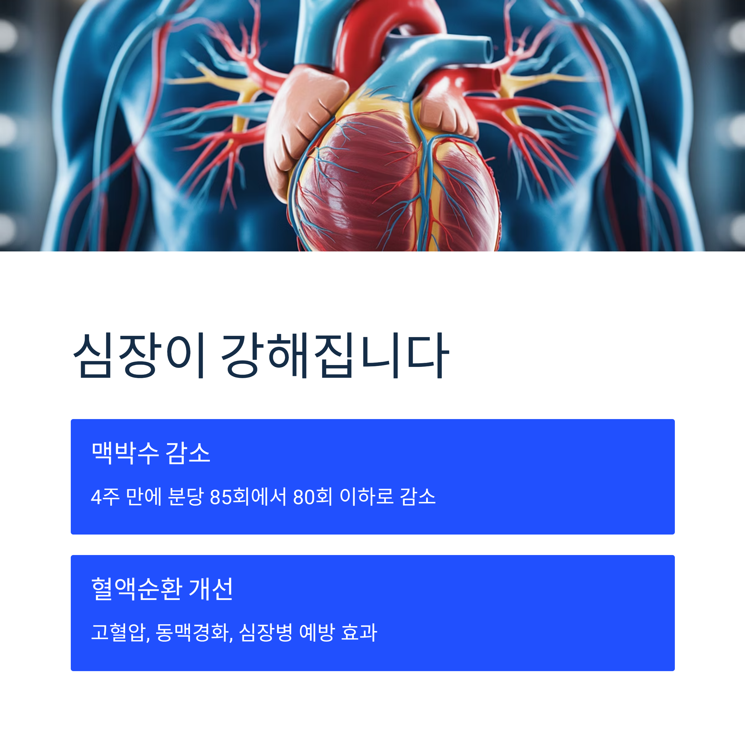 심혈관 건강 강화 측면에서 달리기는 심장 펌프 기능을 향상시켜 분당 맥박수를 감소시킵니다. 4주간만 규칙적으로 달려도 분당 맥박수가 85회 이상에서 80회 이하로 떨어지는 효과가 확인됐습니다. 혈액순환이 개선되면서 고혈압, 동맥경화, 심장병 예방에도 도움이 됩니다.