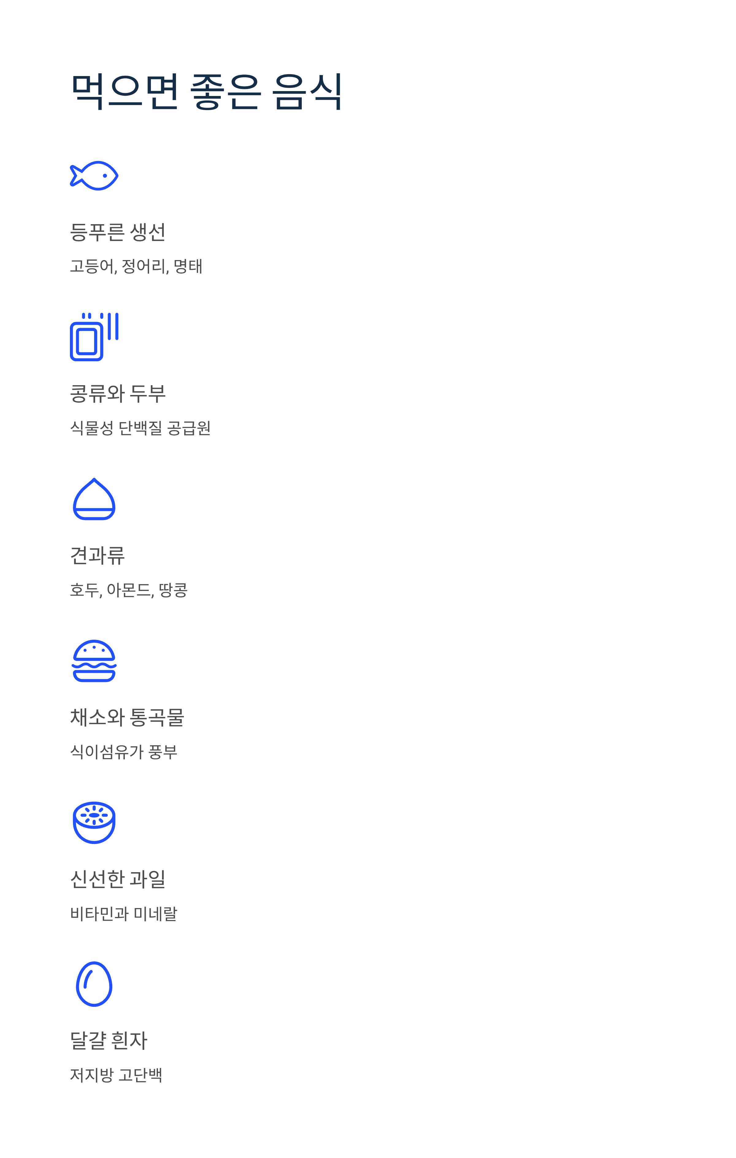 - 등푸른 생선 (고등어, 정어리, 명태)
