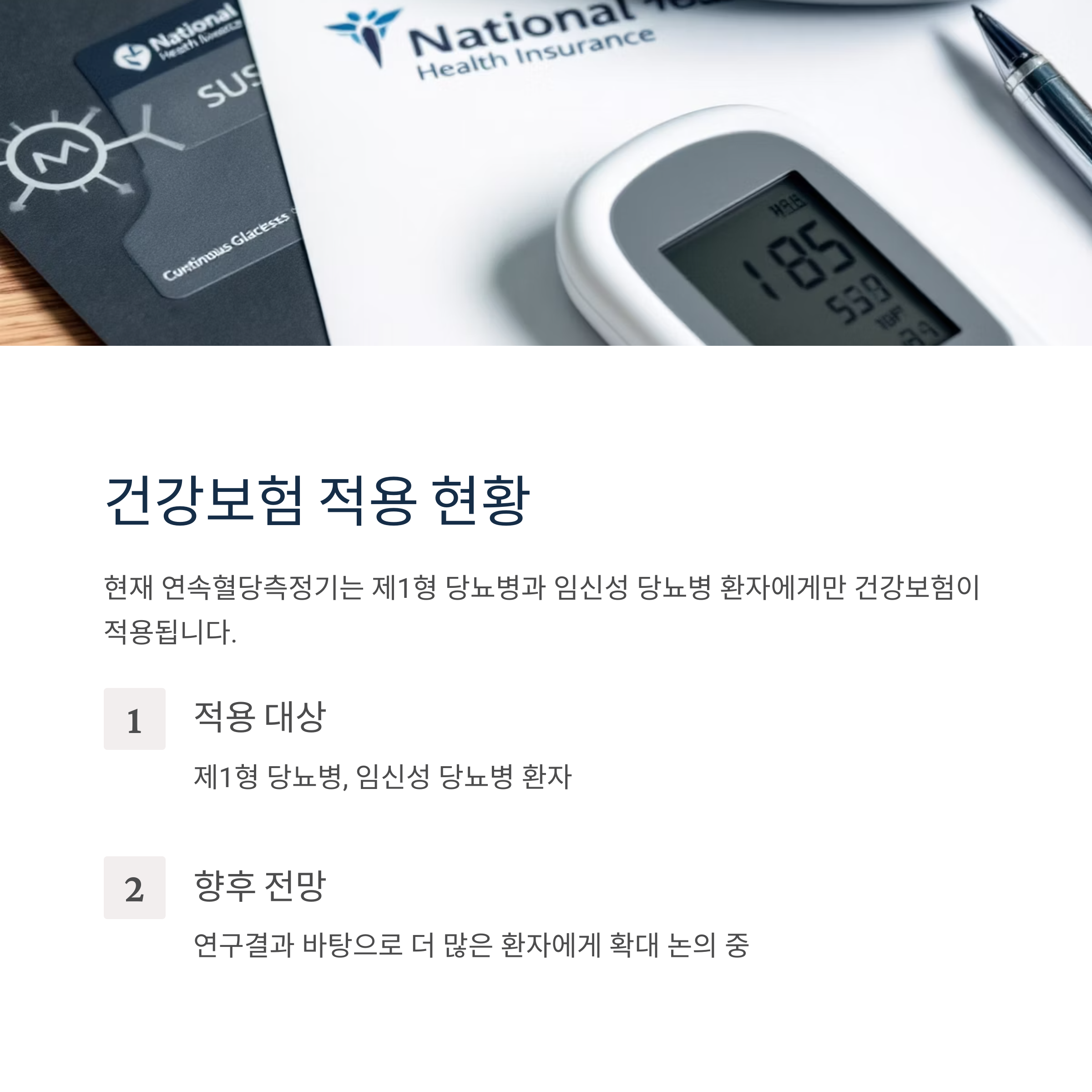 현재 연속혈당측정기는 제1형 당뇨병과 임신성 당뇨병 환자에게만 건강보험이 적용됩니다. 하지만 이번 연구결과를 바탕으로 더 많은 당뇨병 환자들이 혜택을 받을 수 있도록 제도적 지원 확대가 논의되고 있습니다.