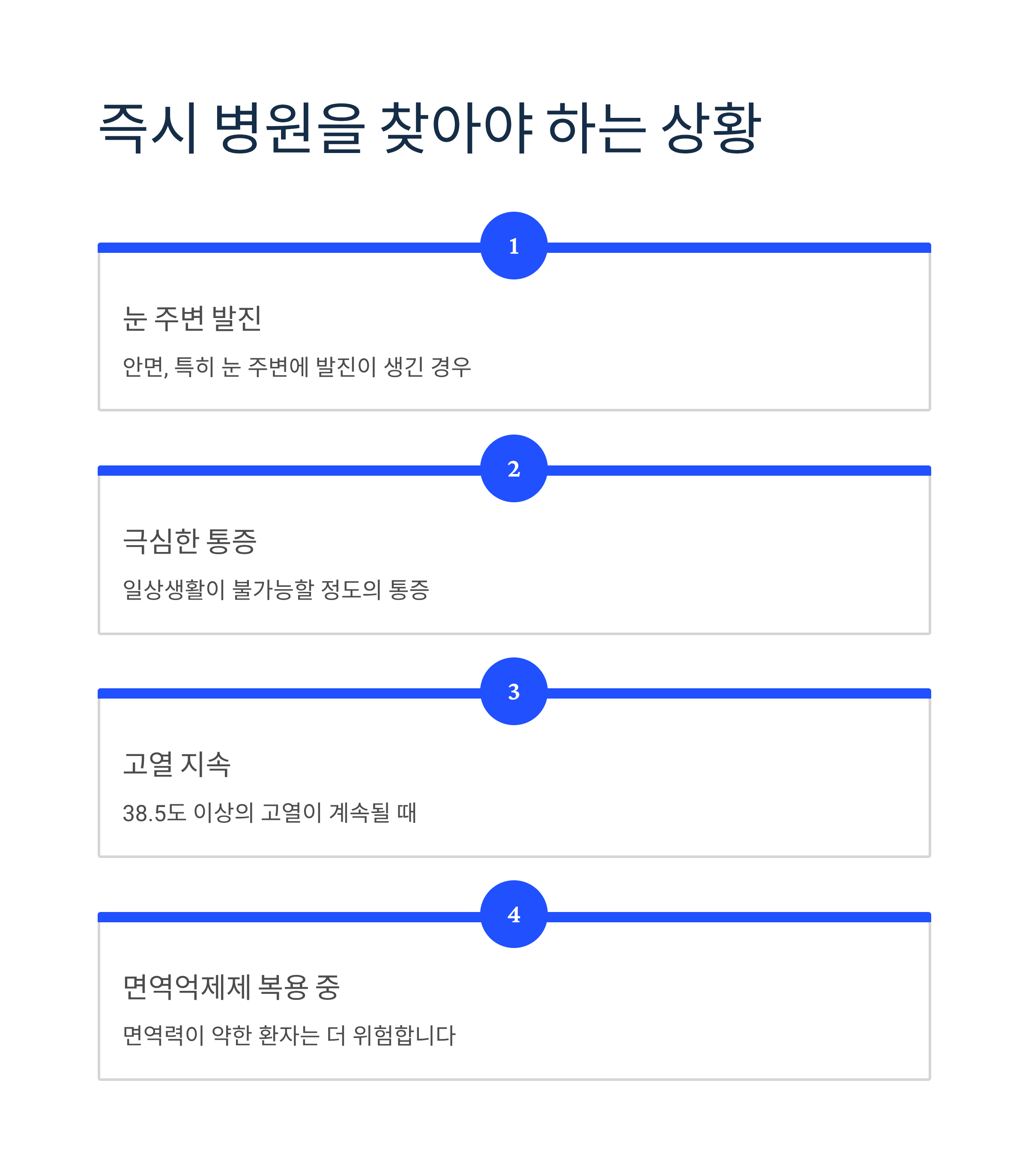 • 시력 장애: 안면 대상포진 시 실명 위험