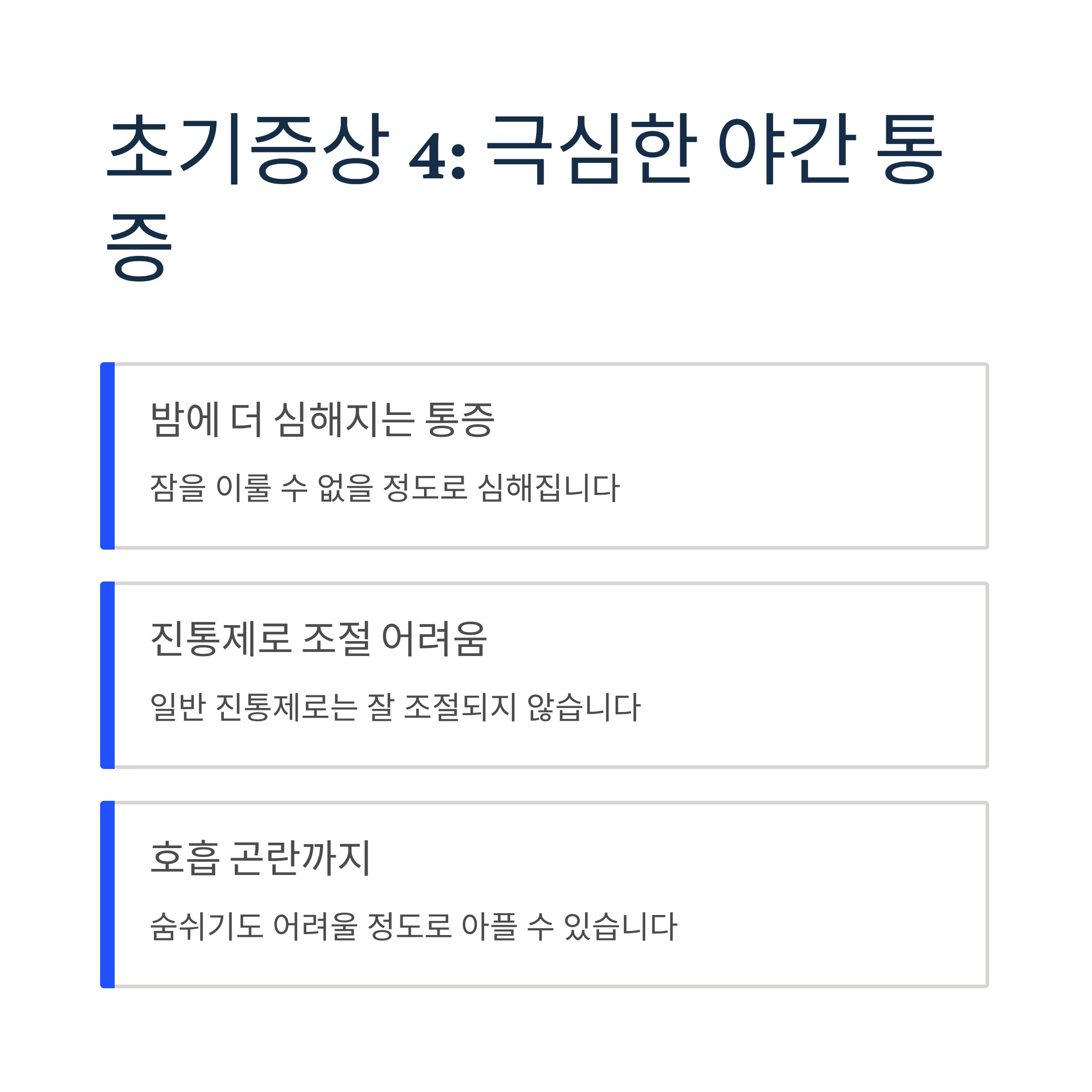 • 잠을 이룰 수 없을 정도의 심한 통증
