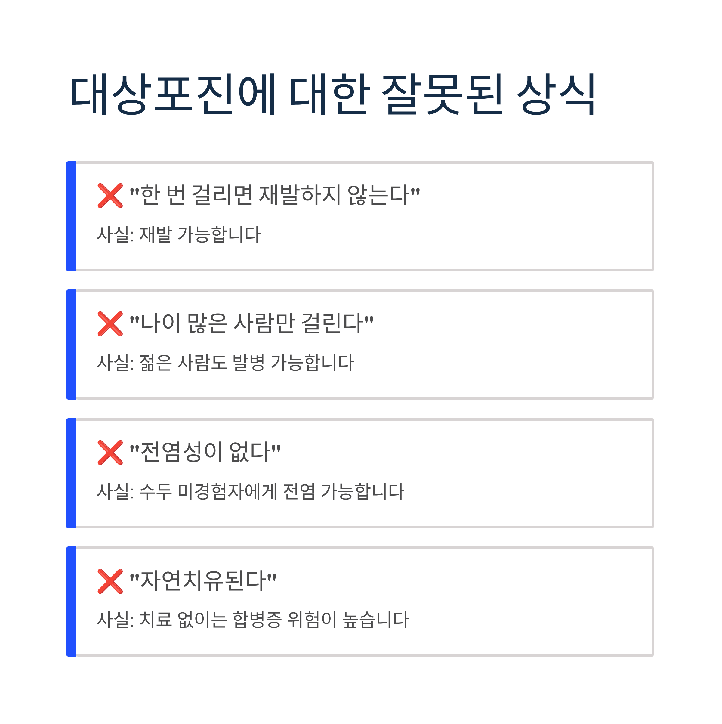 대상포진은 재발 가능한 질환입니다. 특히 면역력이 약해지면 다시 발생할 수 있어 지속적인 관리가 필요합니다.