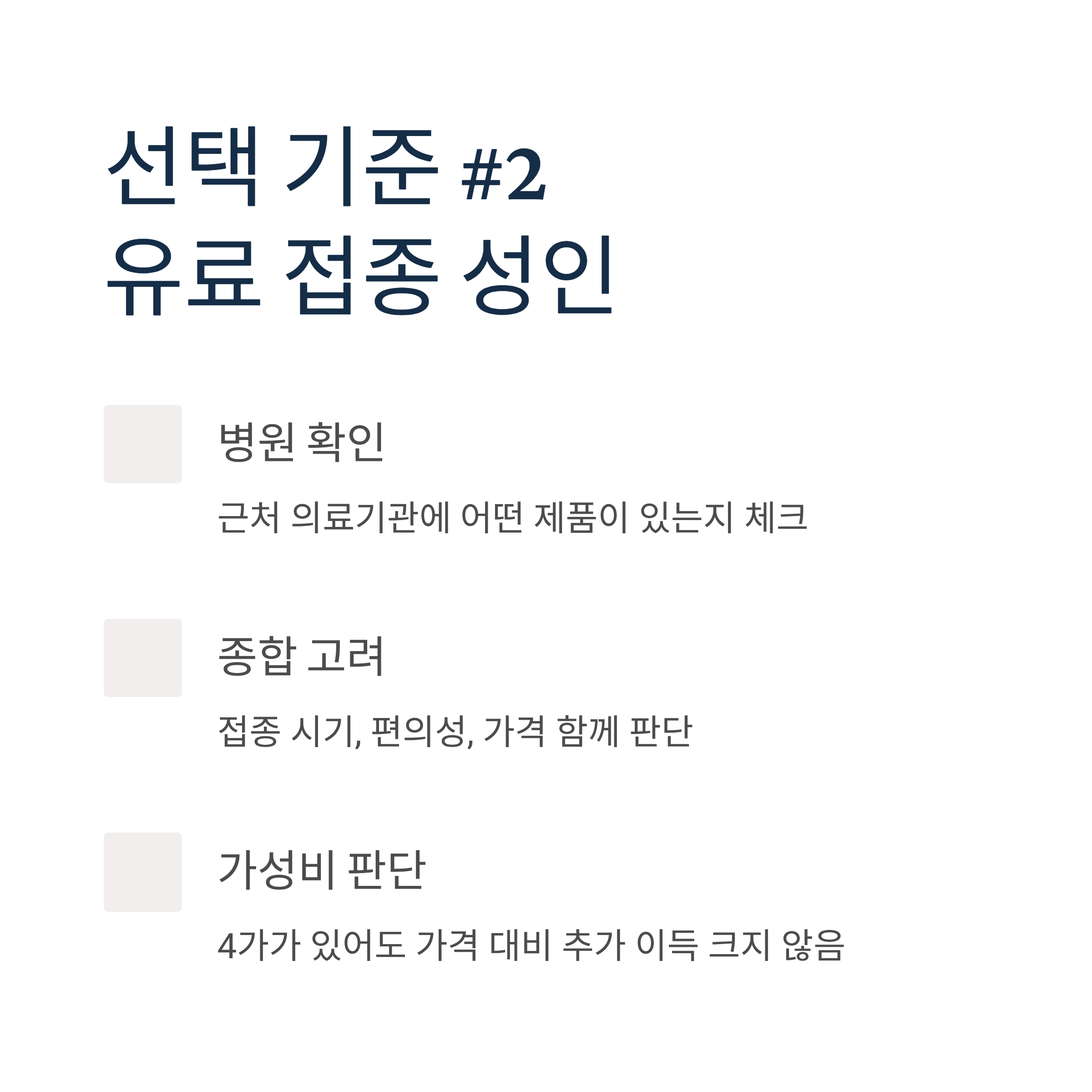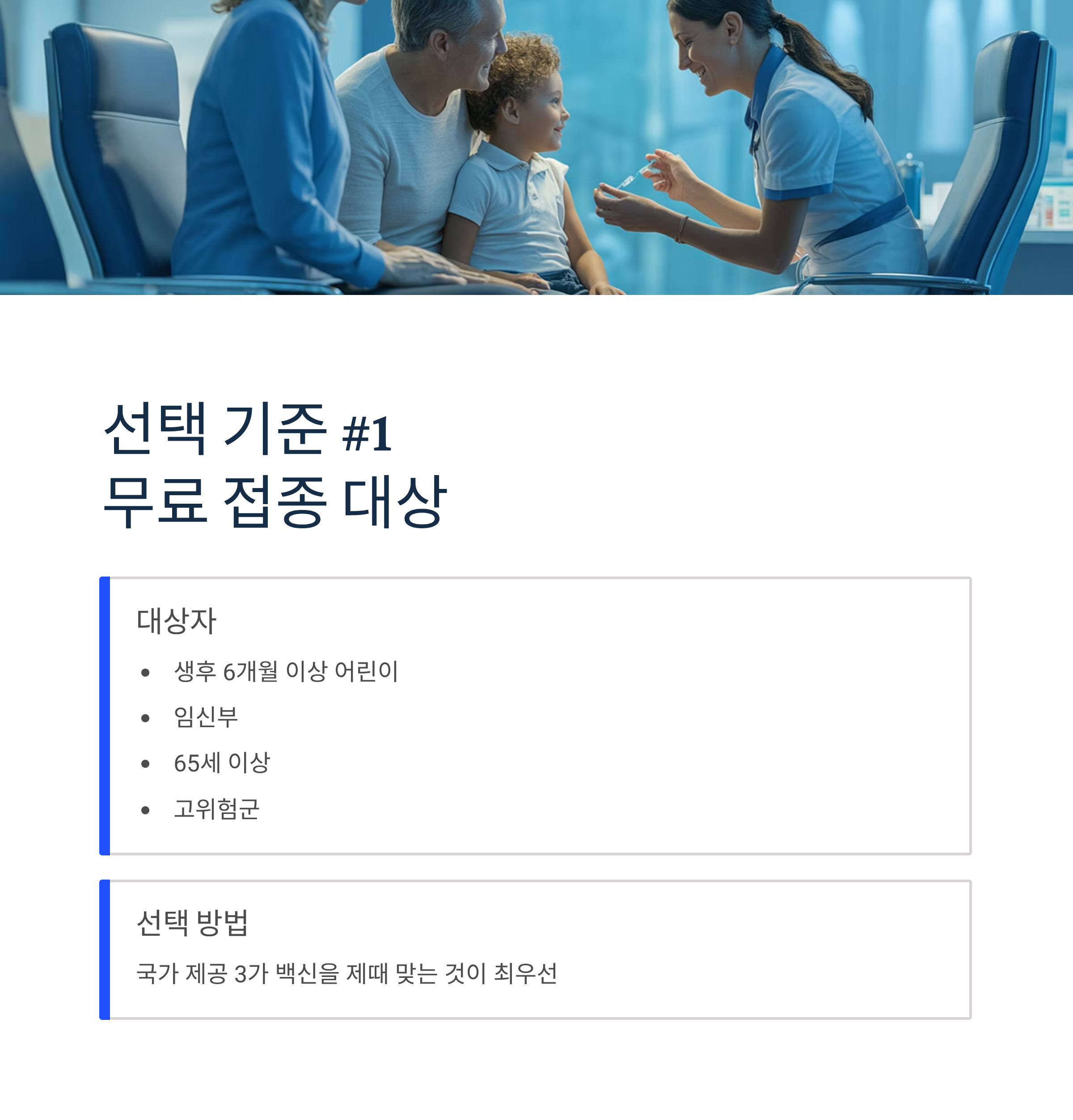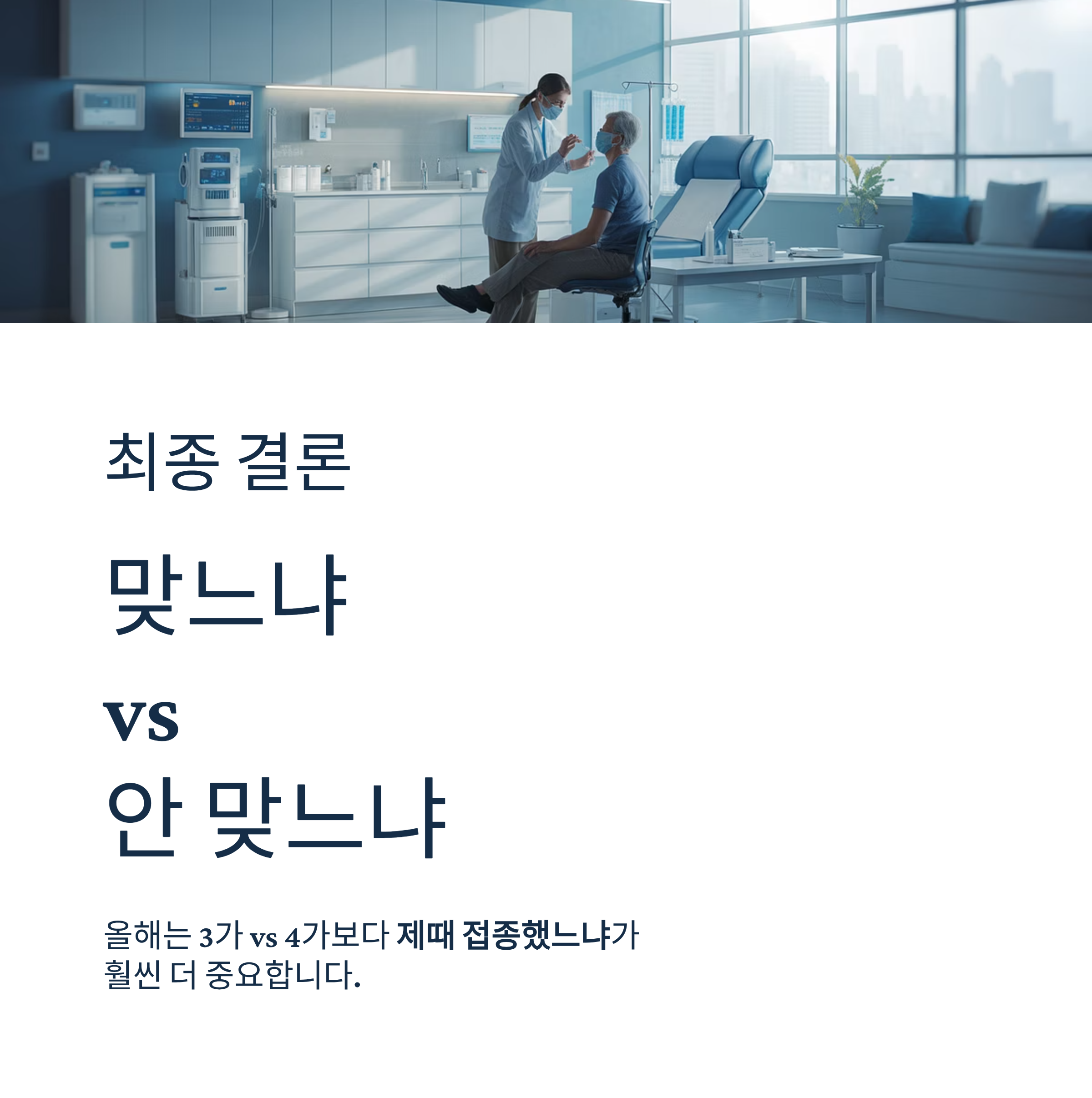 본 내용은 의학적 조언을 대체할 수 없으며, 개인의 건강 상태에 따라 전문의와 상담 후 접종 여부를 결정하시기 바랍니다.