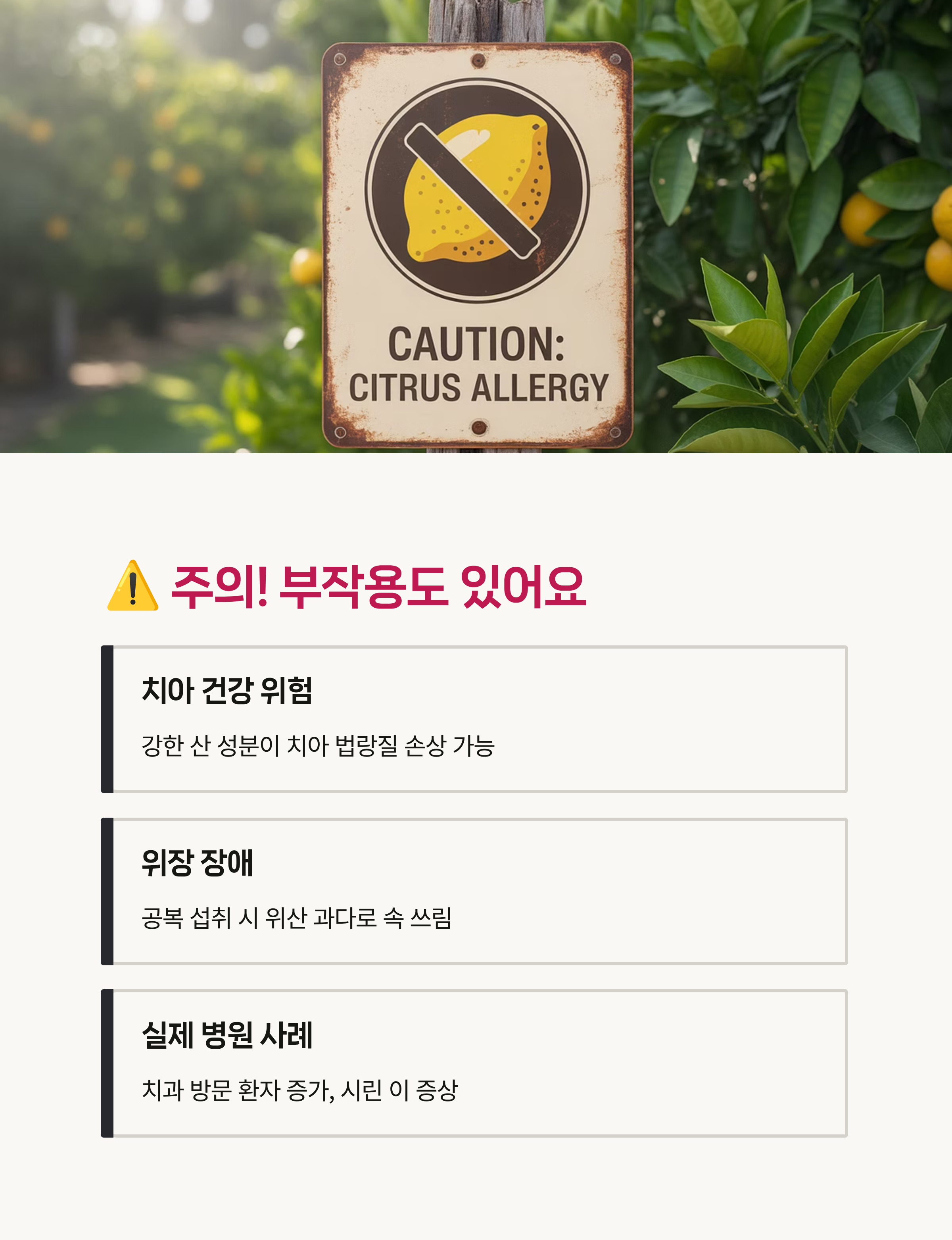 - 주의사항: 치아 부식 위험, 위장 장애 가능성