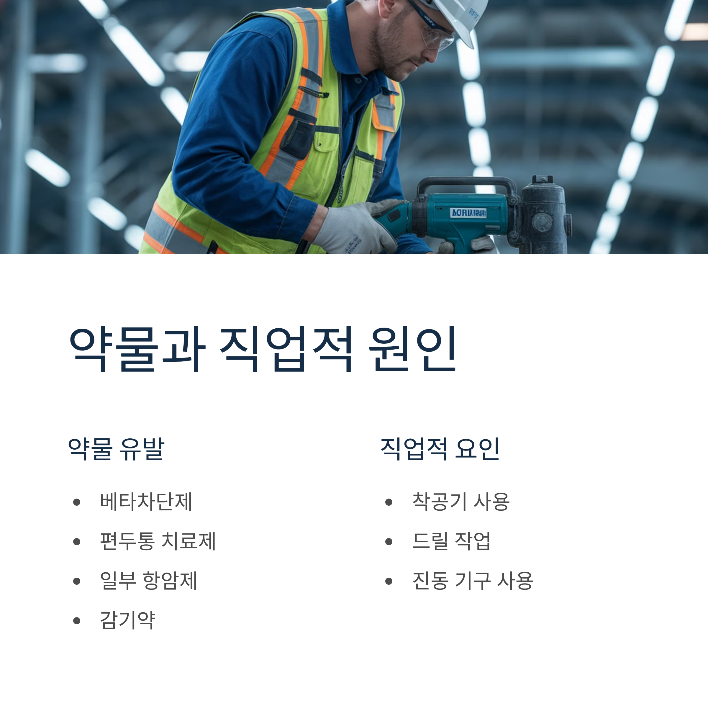 • 환경 요인: 진동 기구 사용 (착공기, 드릴 등), 외상, 동상