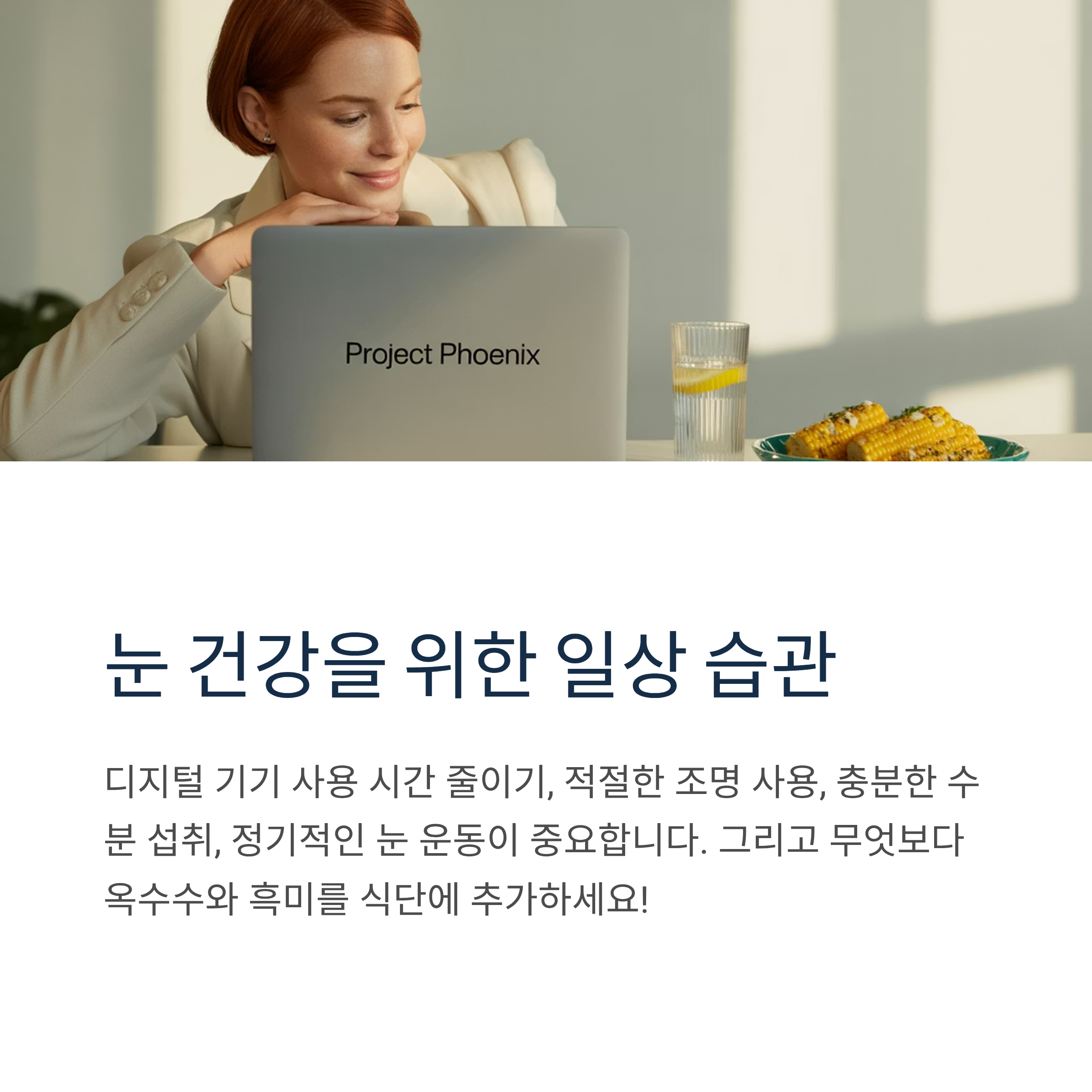 💡 핵심 포인트: 디지털 시대를 살아가는 현대인들에게 옥수수와 흑미는 더 이상 단순한 곡류가 아닌, 소중한 눈 건강 지킴이가 될 수 있을 것입니다. 지금 바로 식단에 옥수수를 추가하여 건강한 시력을 유지해보시기 바랍니다!