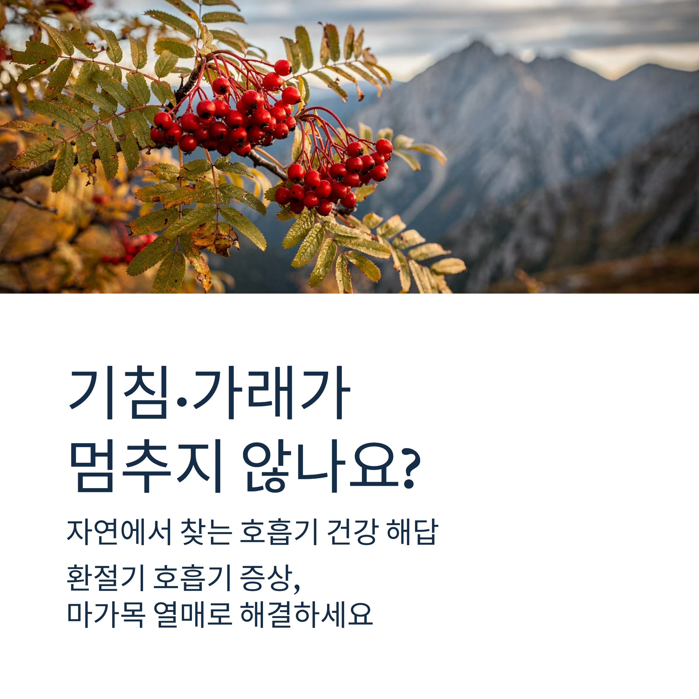 "기침과 가래가 멈추지 않는데 약은 더 이상 먹고 싶지 않다면?" 환절기만 되면 찾아오는 호흡기 증상, 자연에서 답을 찾아보세요.