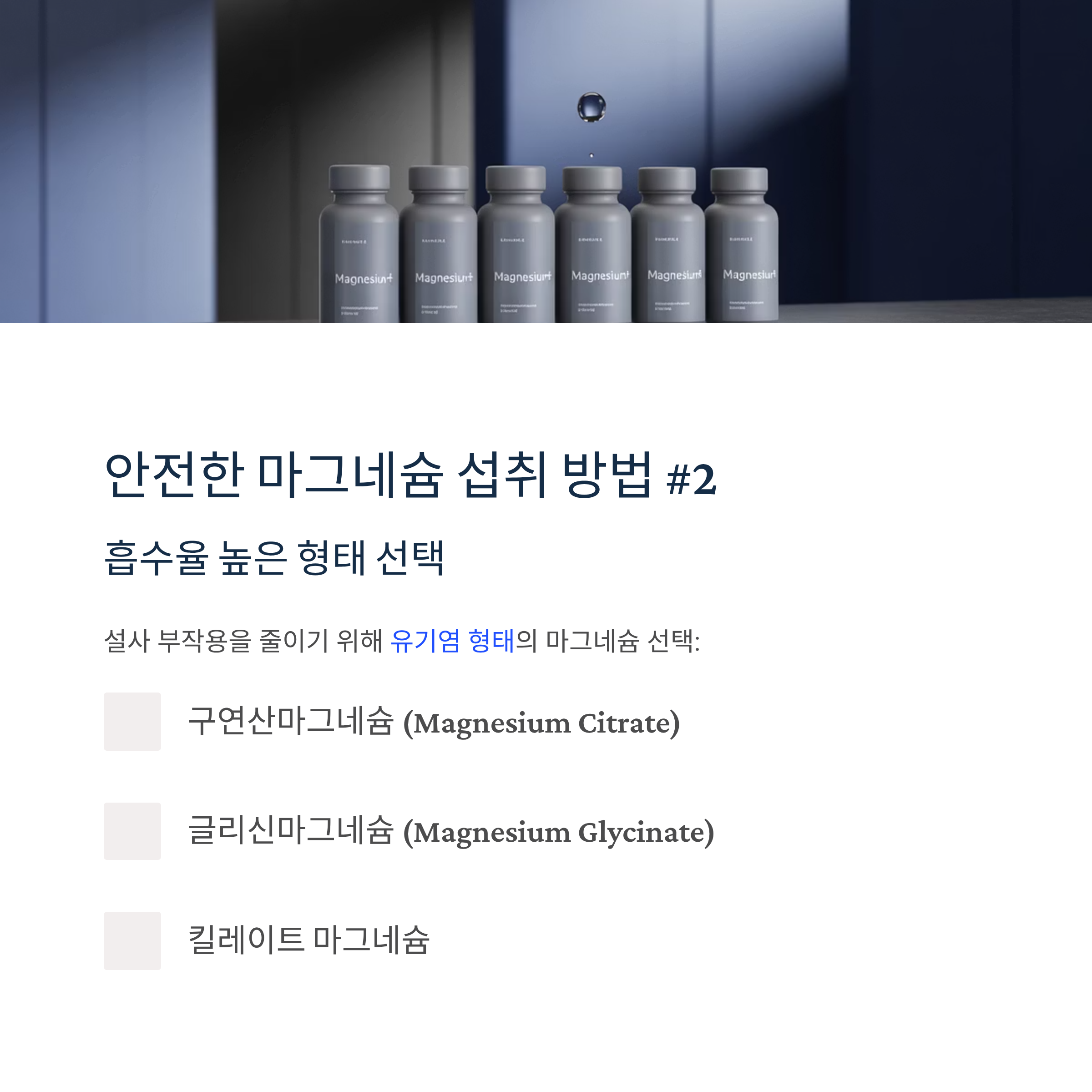 설사 부작용을 줄이기 위해 유기염 형태의 마그네슘 선택: