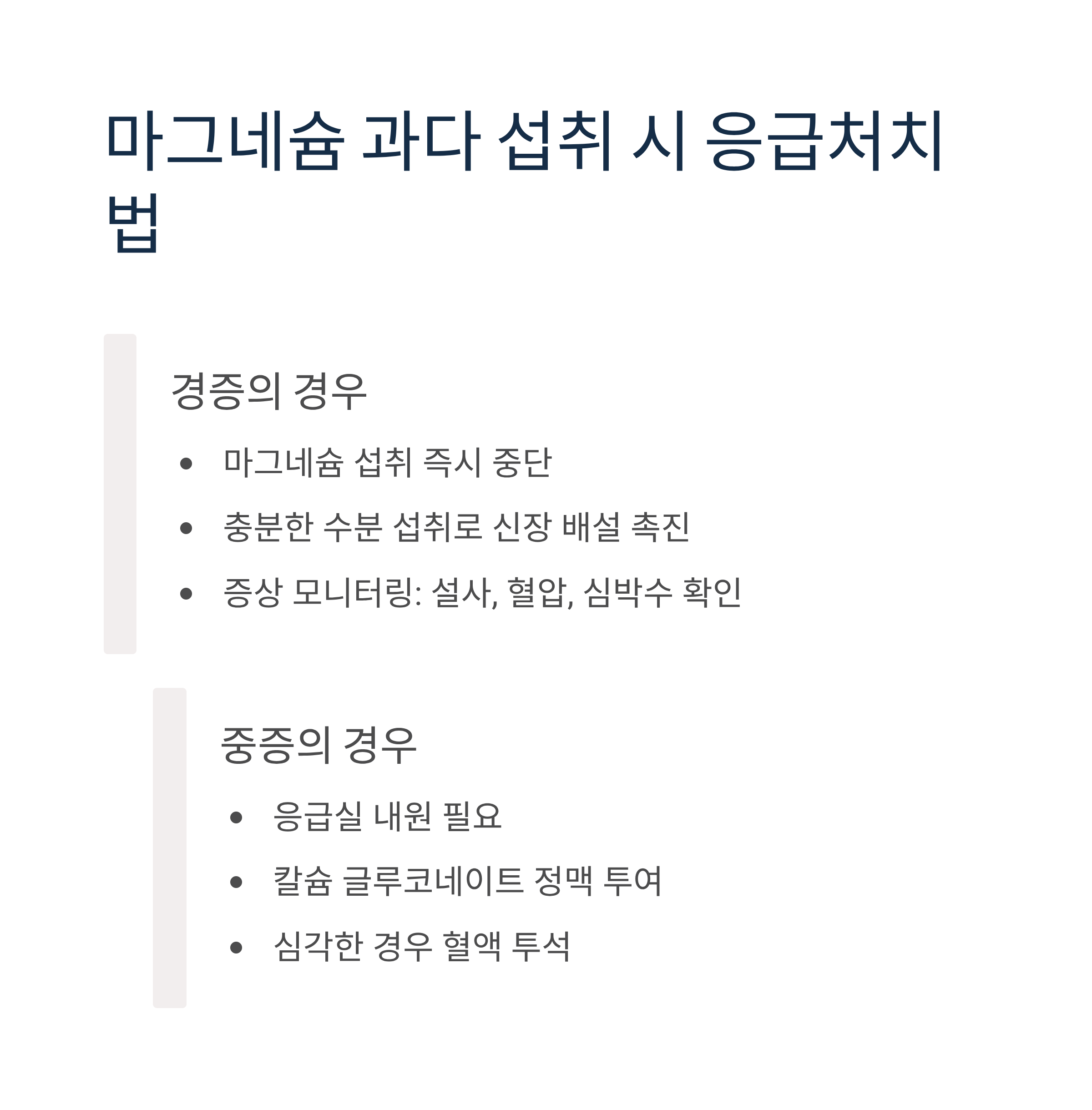 - 마그네슘 섭취 즉시 중단