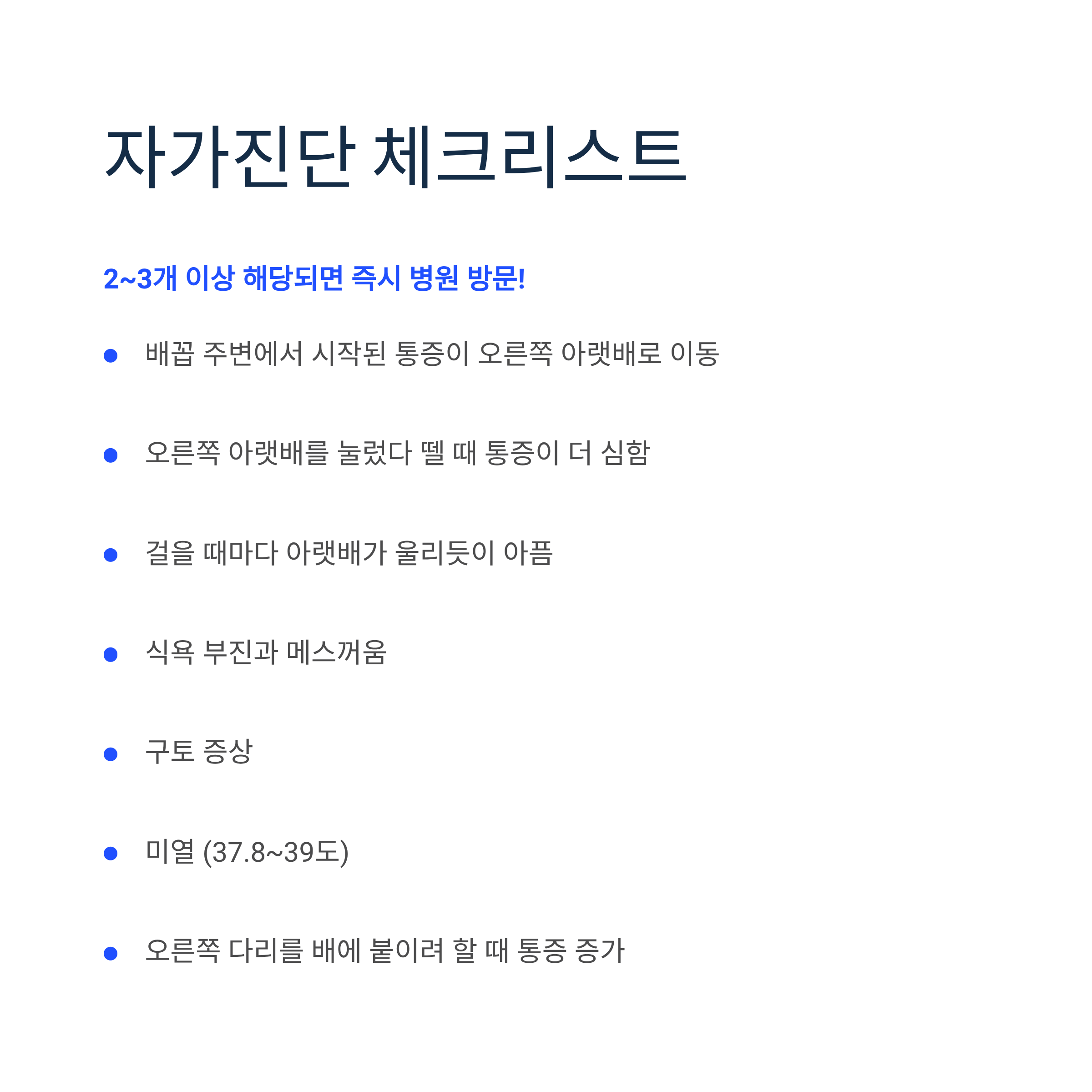 맹장염 자가진단 체크리스트