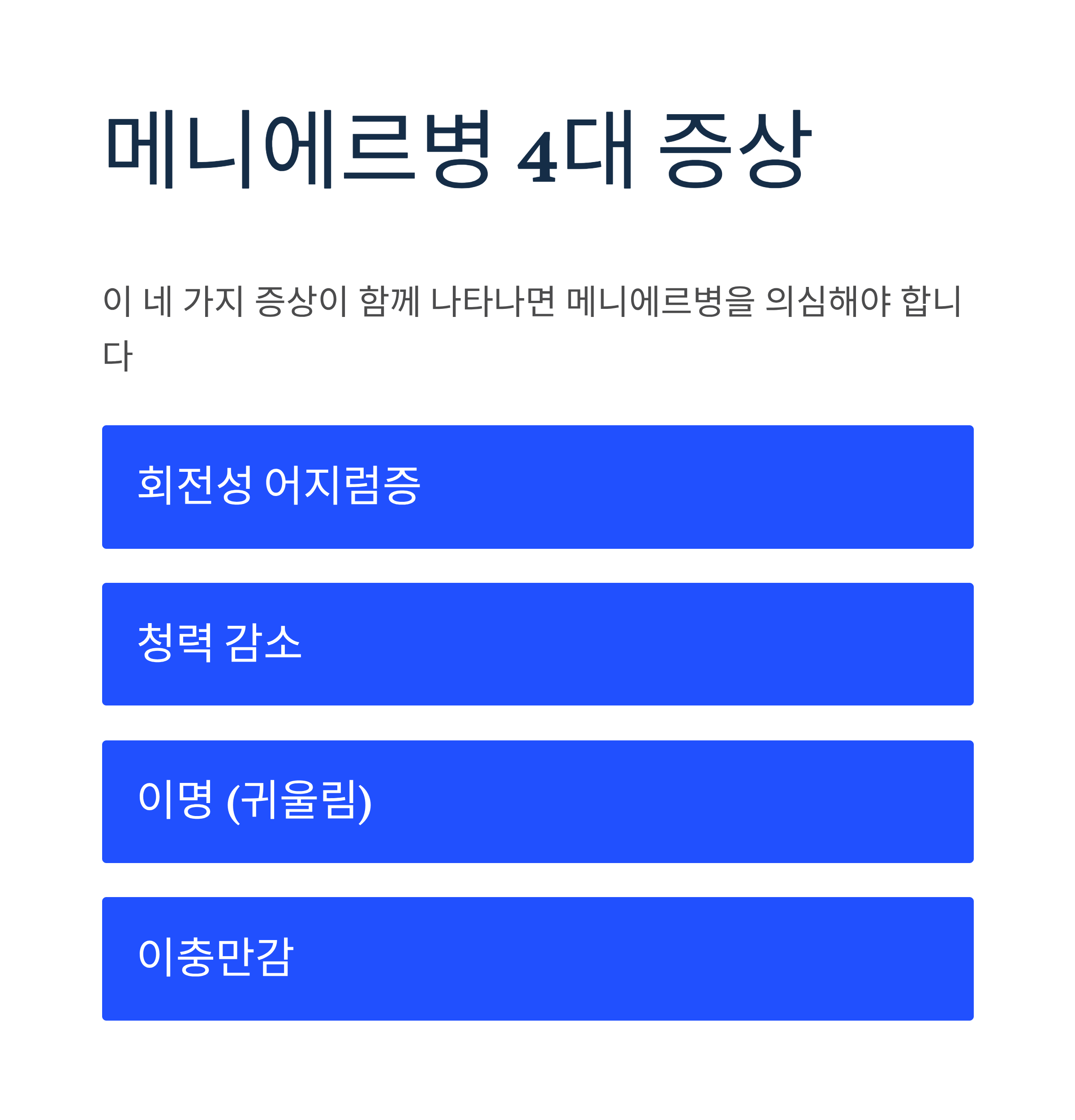 - 어지럼증과 함께 귀 먹먹함, 이명이 동시 발생