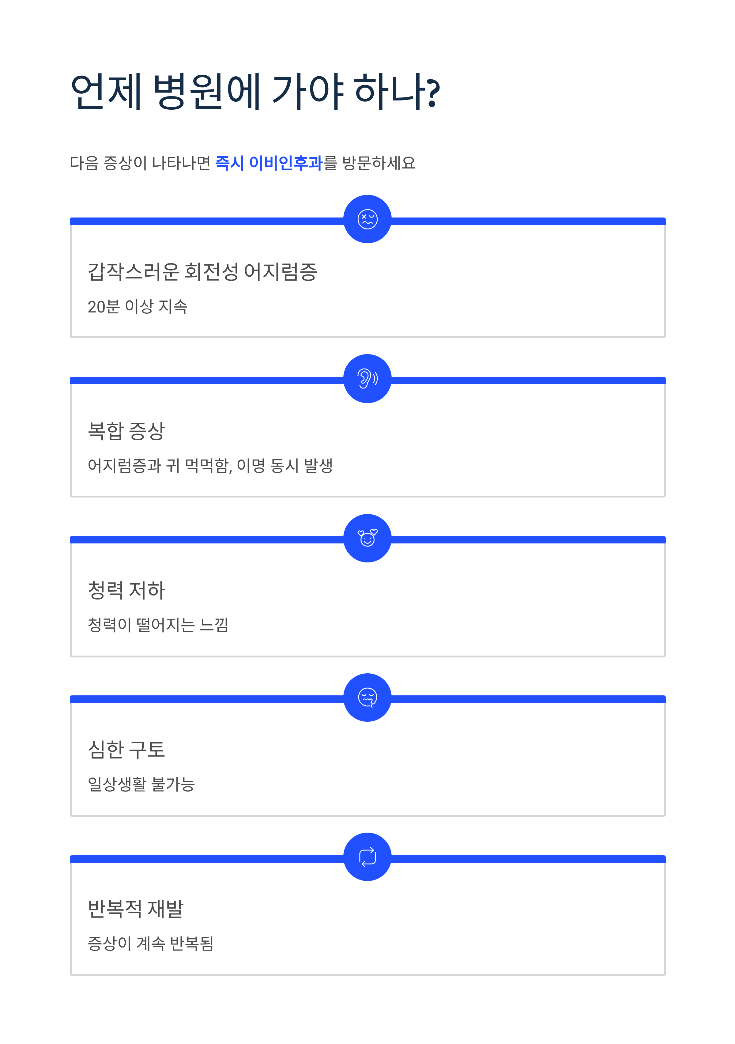 다음 증상이 나타나면 즉시 이비인후과를 방문하세요: