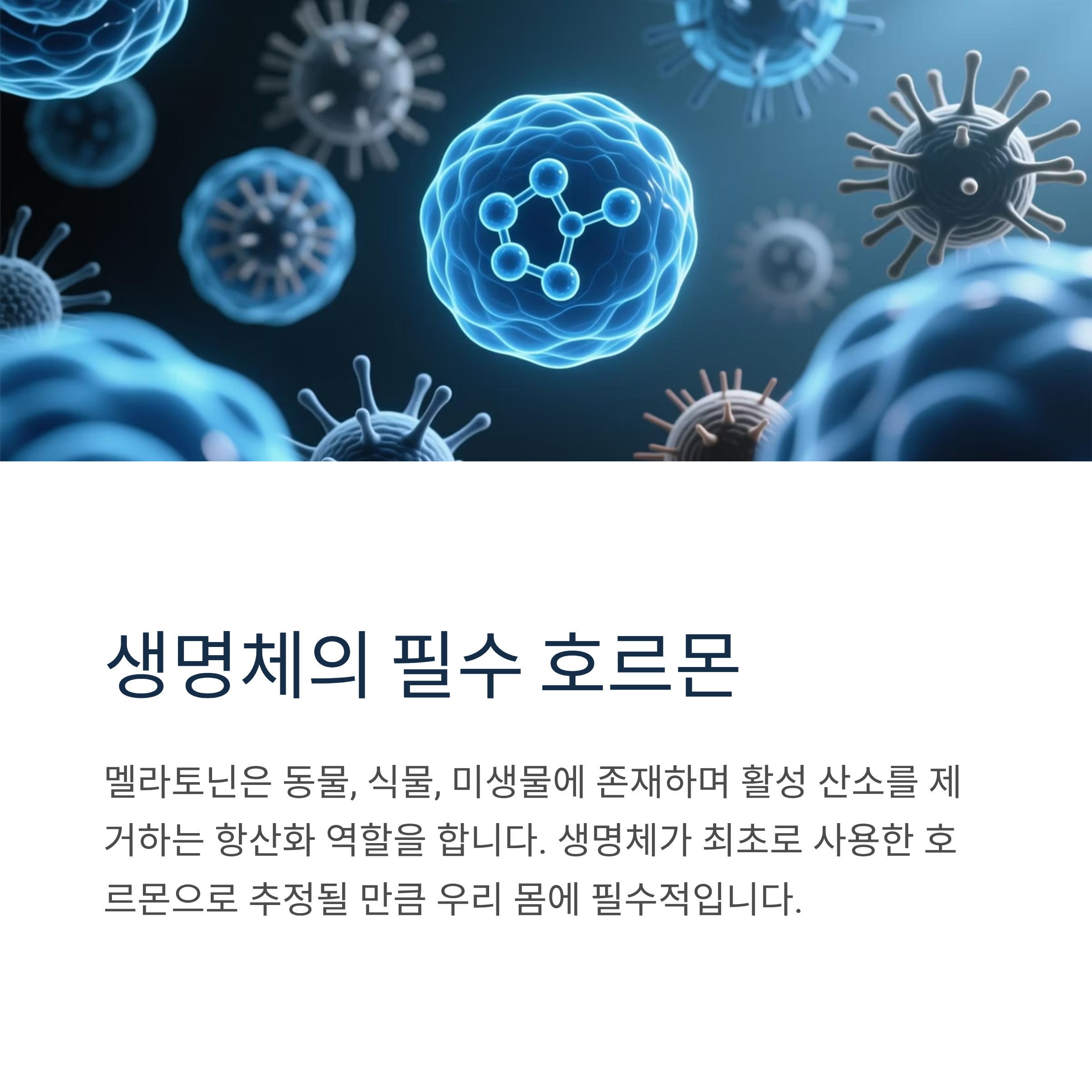 흥미롭게도 멜라토닌은 동물, 식물, 미생물에 존재하며 활성 산소를 제거하는 항산화 역할을 주로 하고, 척추동물들의 활동일주기를 조절해주는 호르몬입니다. 이는 생명체가 최초로 사용한 호르몬으로 추정될 만큼 우리 몸에 필수적인 물질입니다.