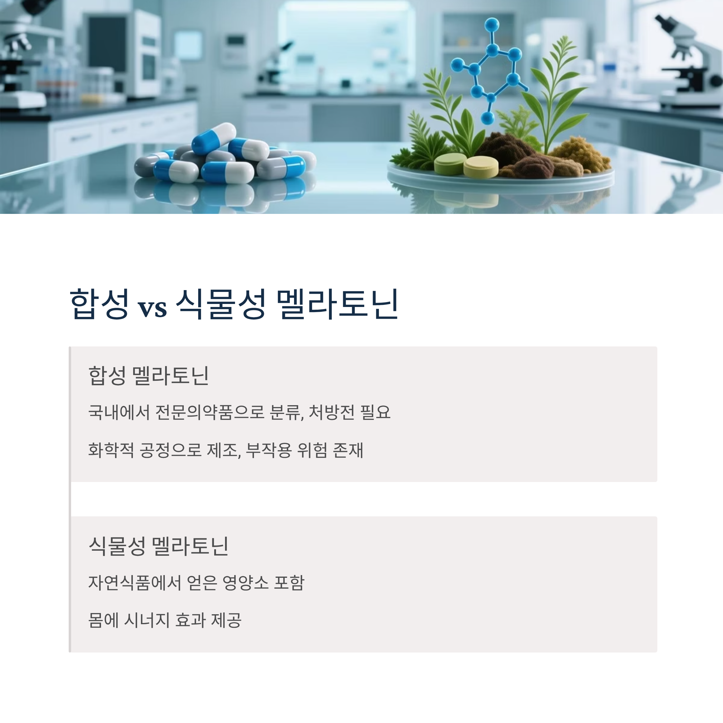 국내에서는 합성 멜라토닌이 전문의약품으로 분류되어 처방전이 필요합니다. 하지만 최근 식물에서 추출된 식물성 멜라토닌은 자연식품에서 얻을 수 있는 영양소를 포함하고 있어 몸에 시너지를 냅니다.