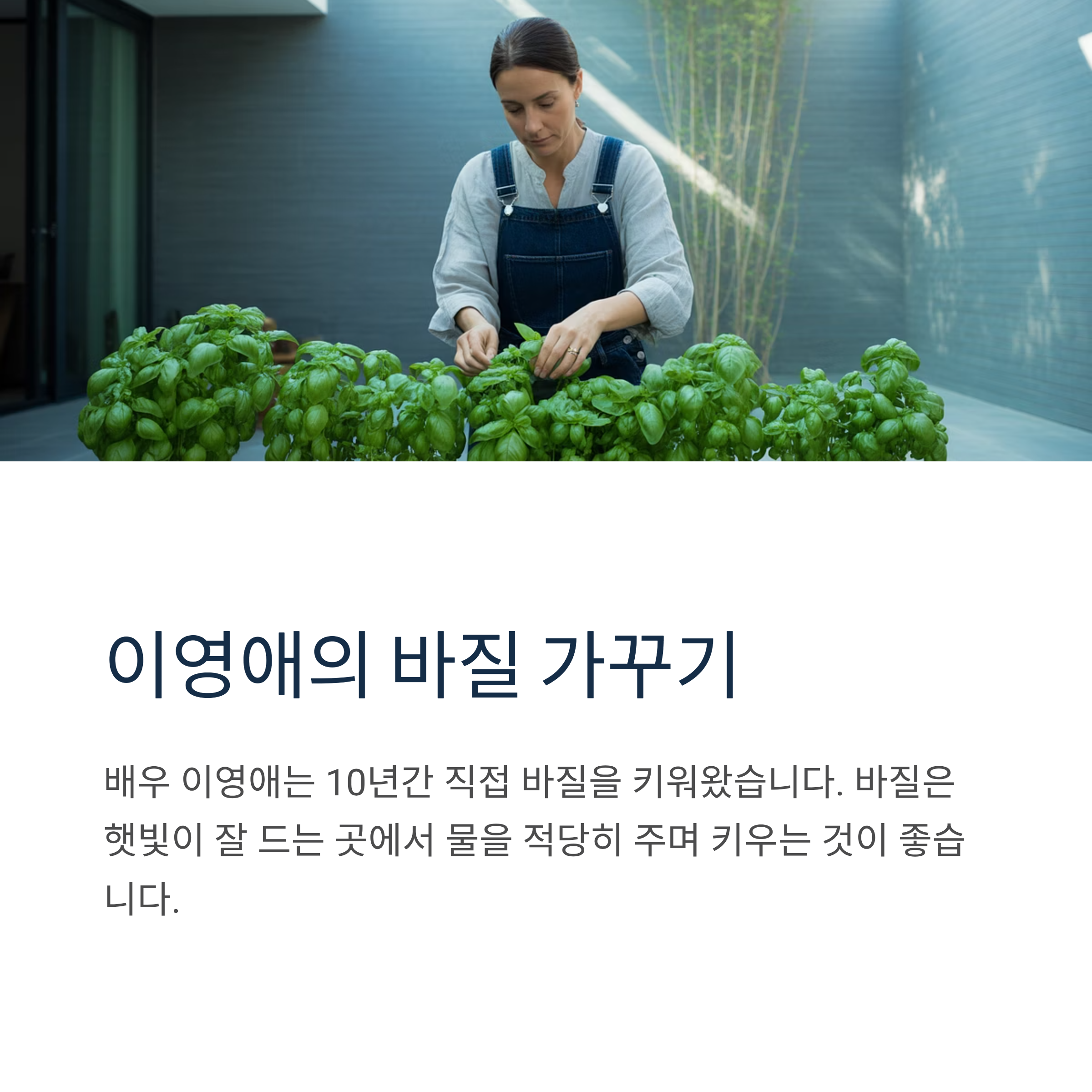 바질은 단순한 향신료를 넘어 놀라운 건강 효능을 지닌 슈퍼푸드입니다. 항산화, 항염증, 면역력 강화 등 다양한 건강상 이점을 제공하지만, 임산부나 항응고제 복용자는 주의해서 섭취해야 합니다. 이영애처럼 직접 기르지 못하더라도, 신선한 바질을 구입하여 생으로 섭취하거나 적절히 조리해서 먹으면 건강한 식생활에 큰 도움이 될 것입니다.