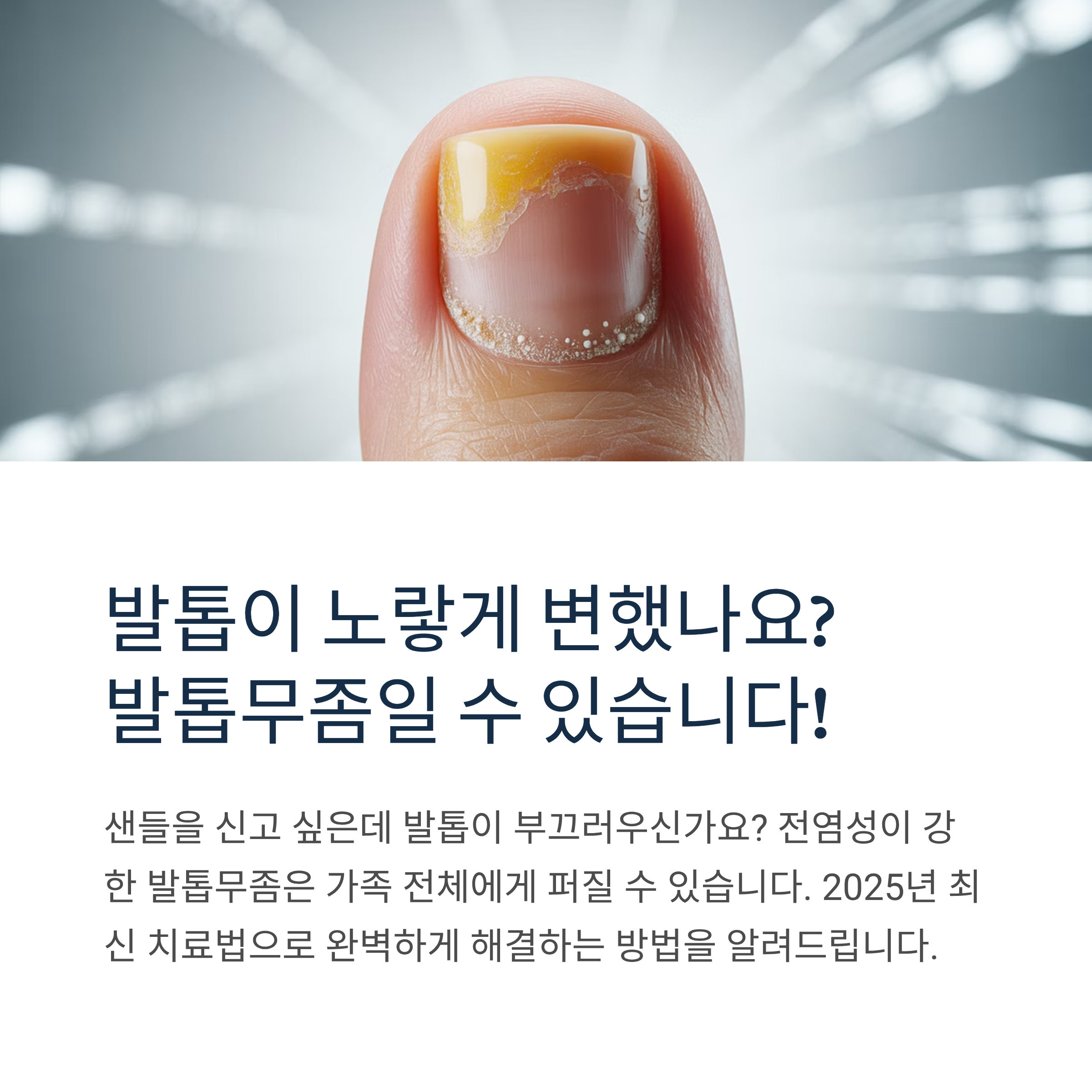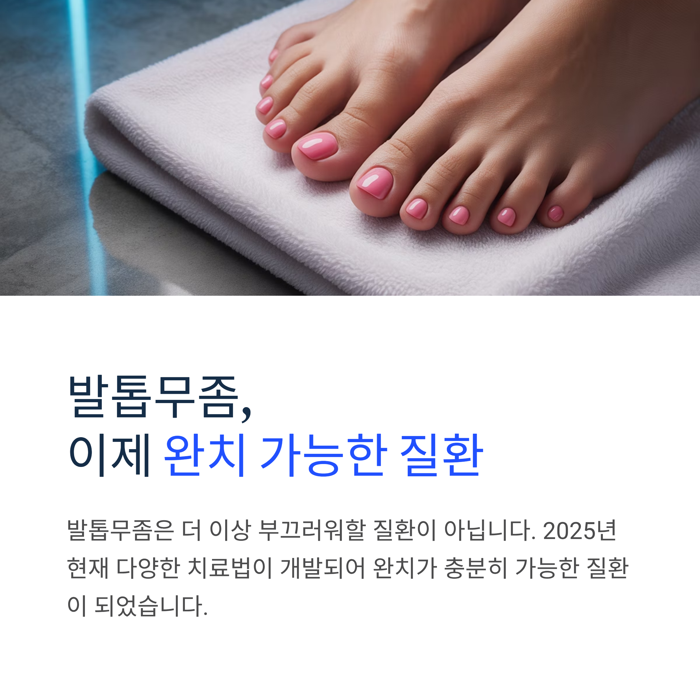 발톱무좀은 더 이상 부끄러워할 질환이 아닙니다. 2025년 현재 다양한 치료법이 개발되어 완치가 충분히 가능한 질환이 되었습니다.