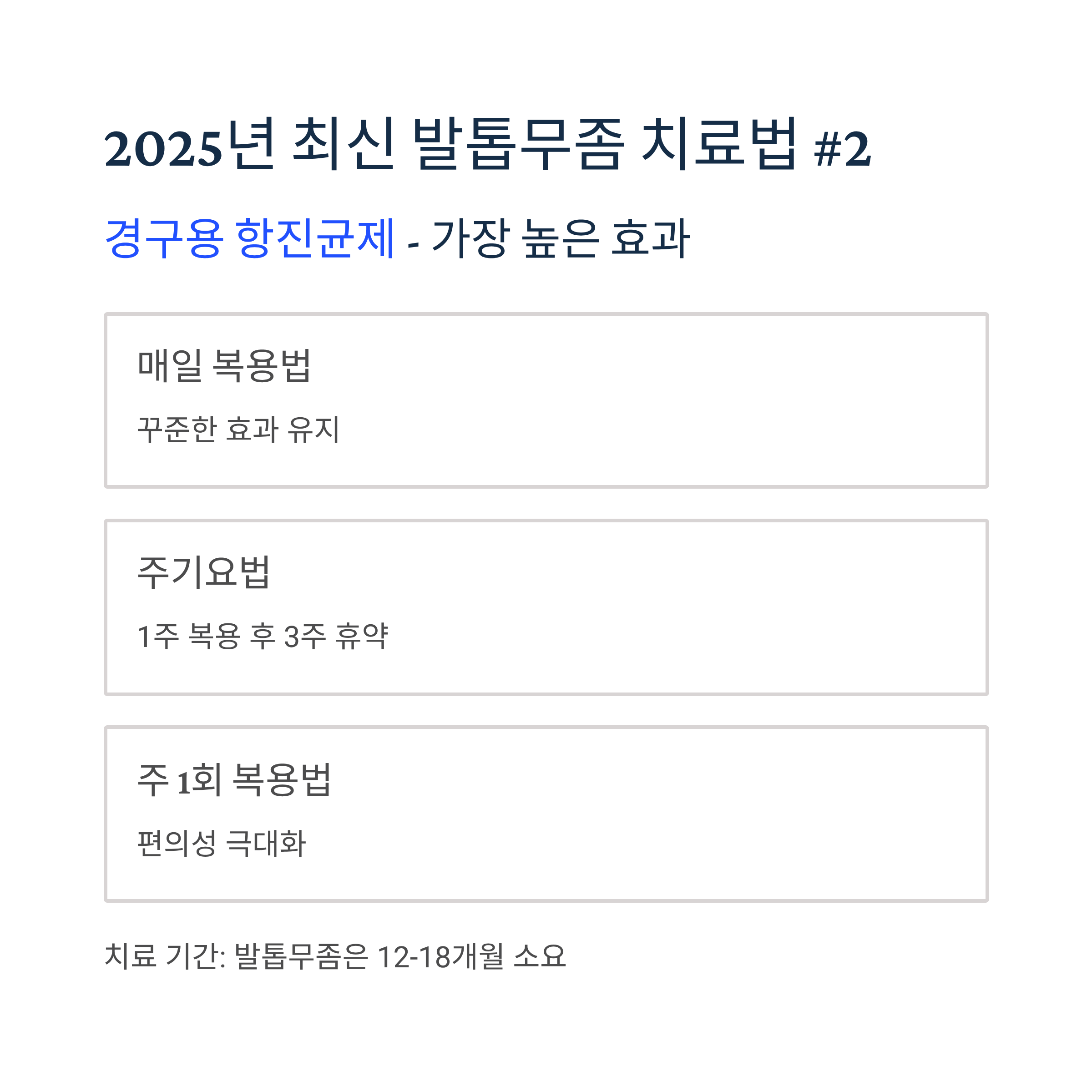 - 발톱무좀: 12-18개월