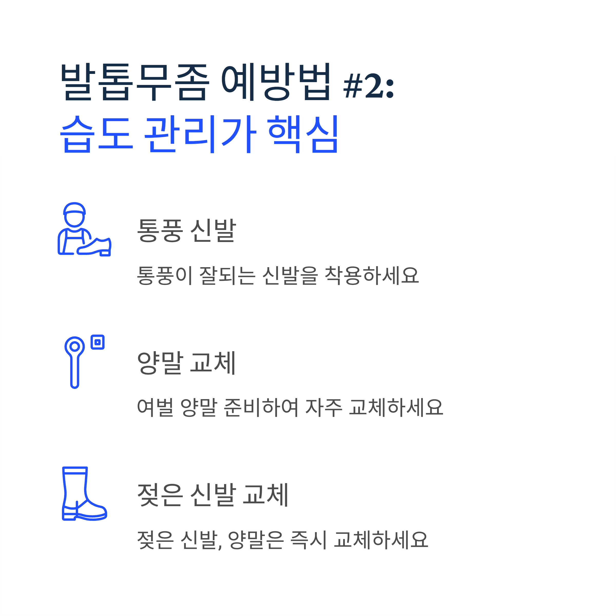 - 여벌 양말 준비하여 자주 교체