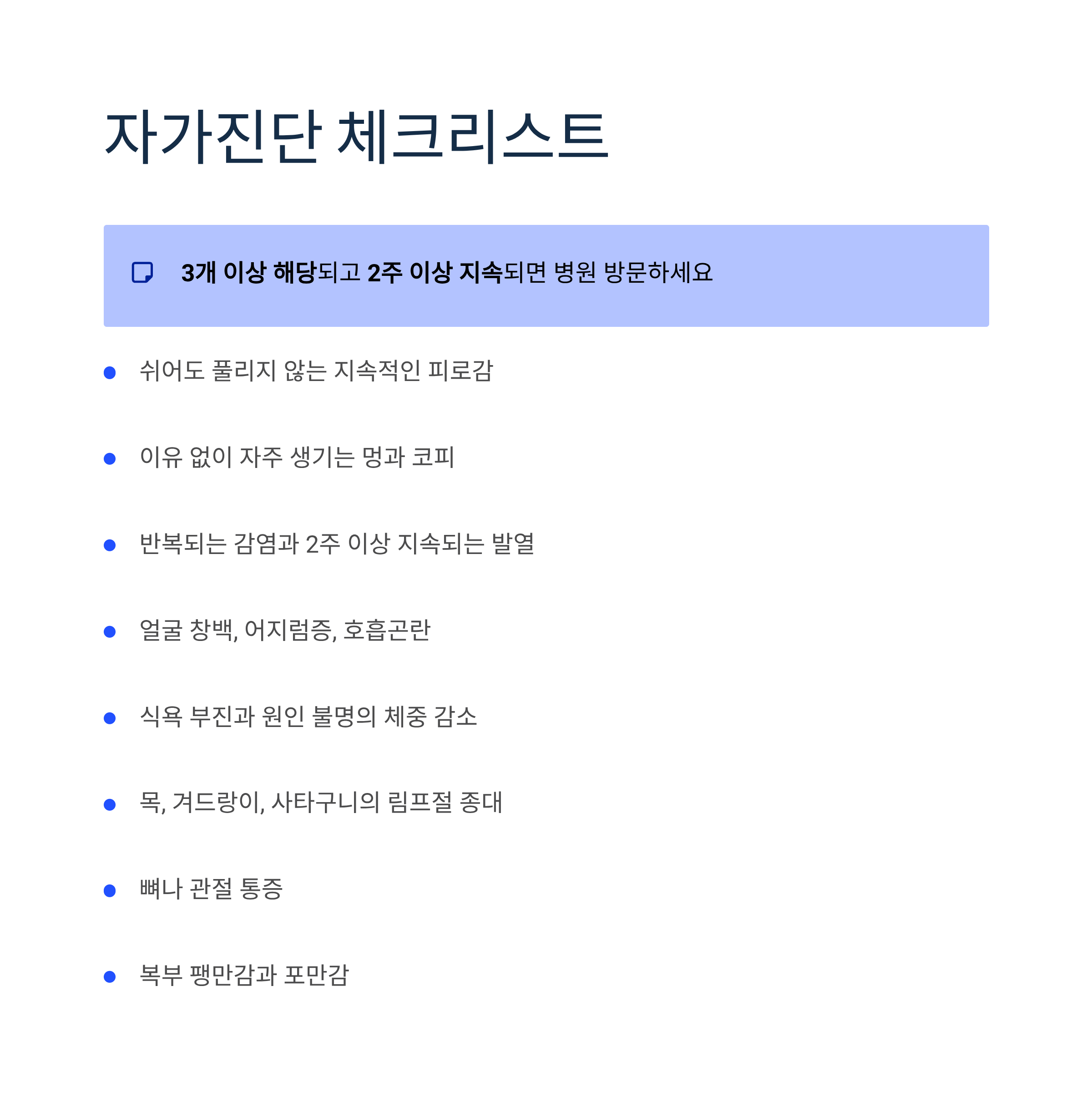 백혈병 자가진단 체크리스트
