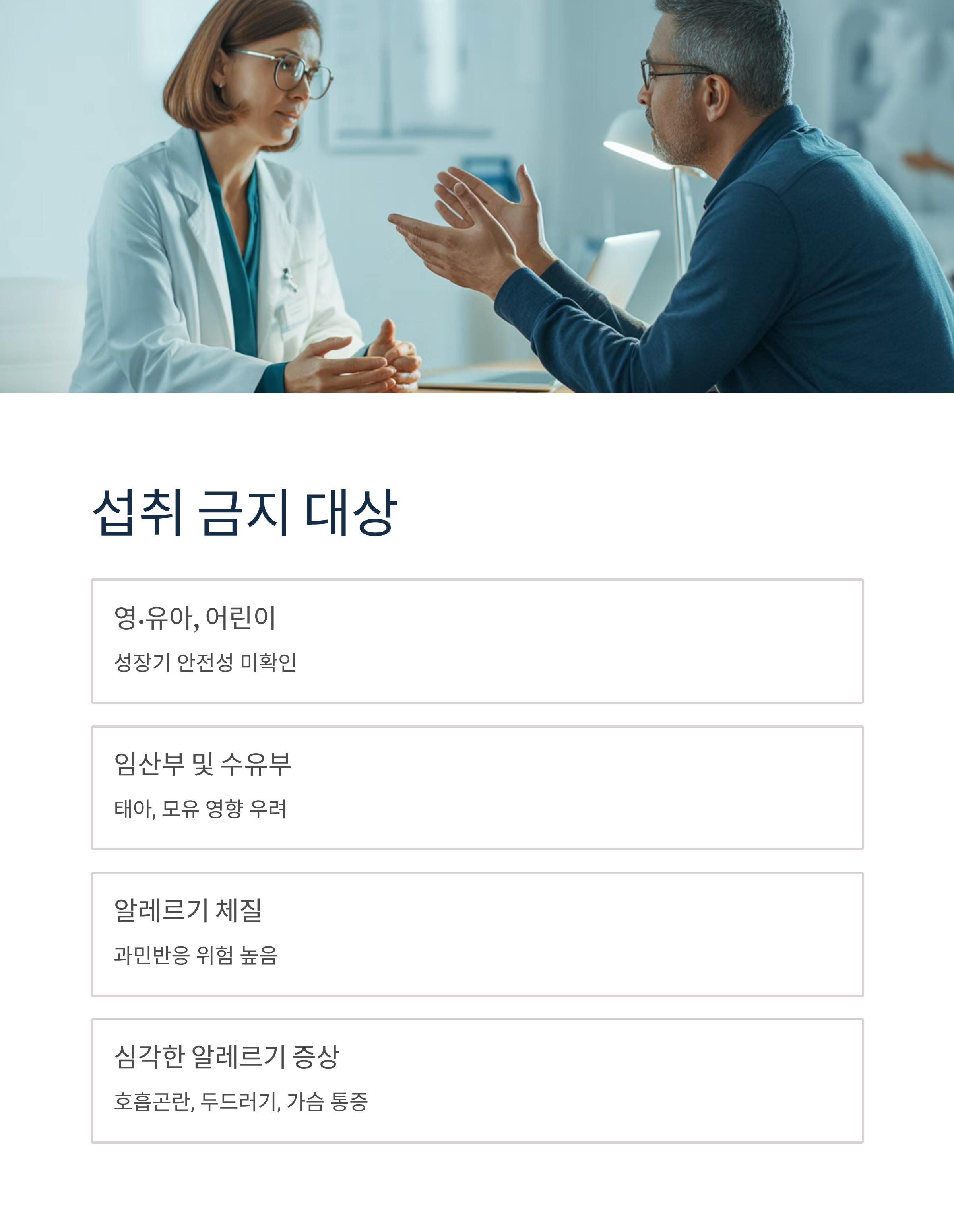 - 호흡곤란, 두드러기, 가슴 통증 등 알레르기 반응이 있는 사람