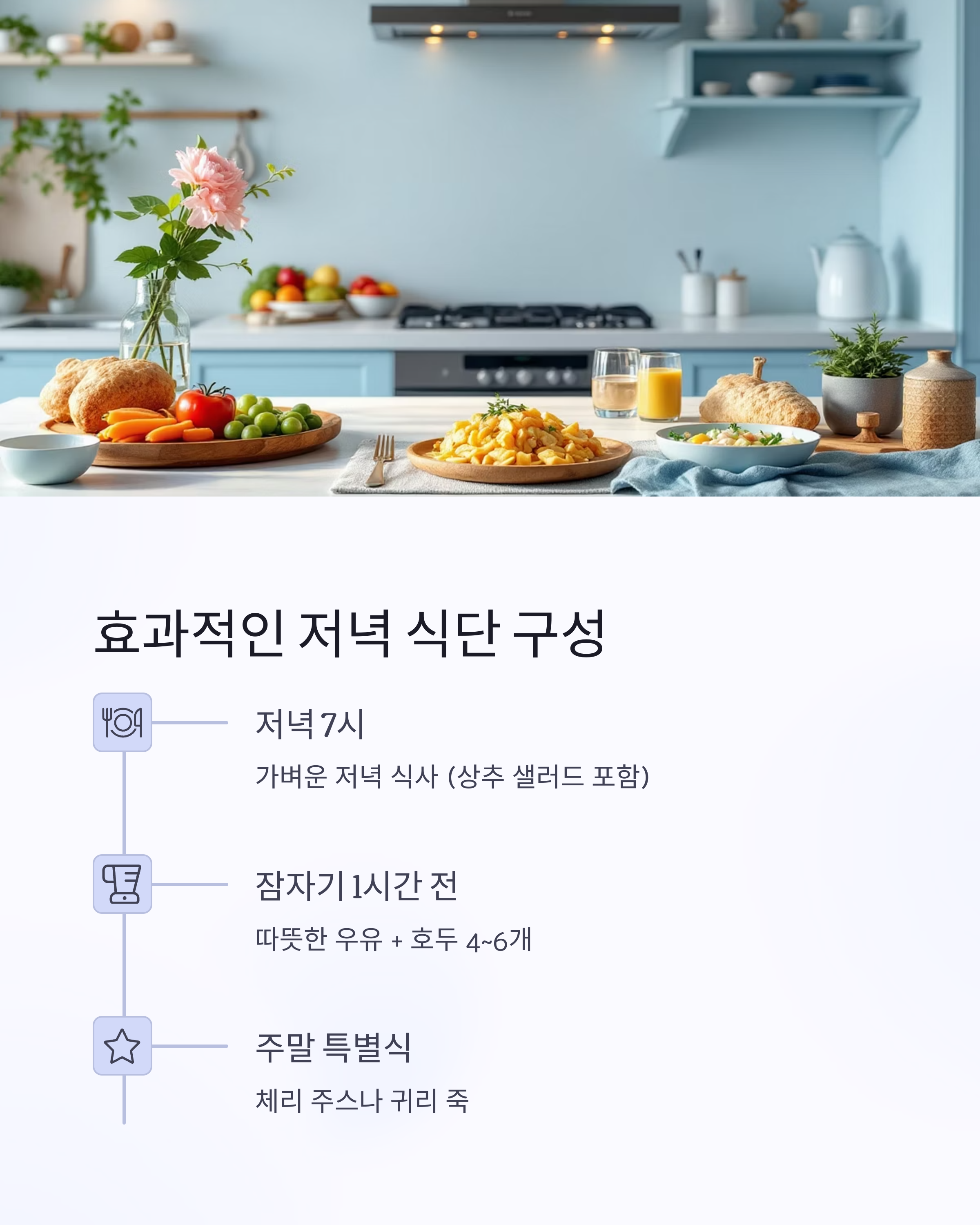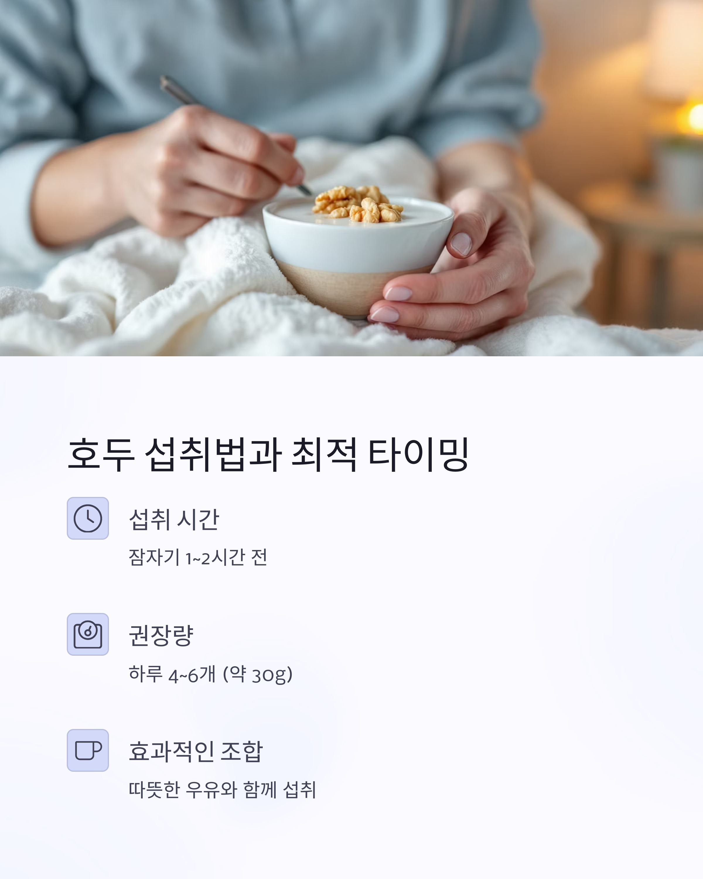 - 잠자기 1시간 전: 따뜻한 우유 + 호두 4~6개