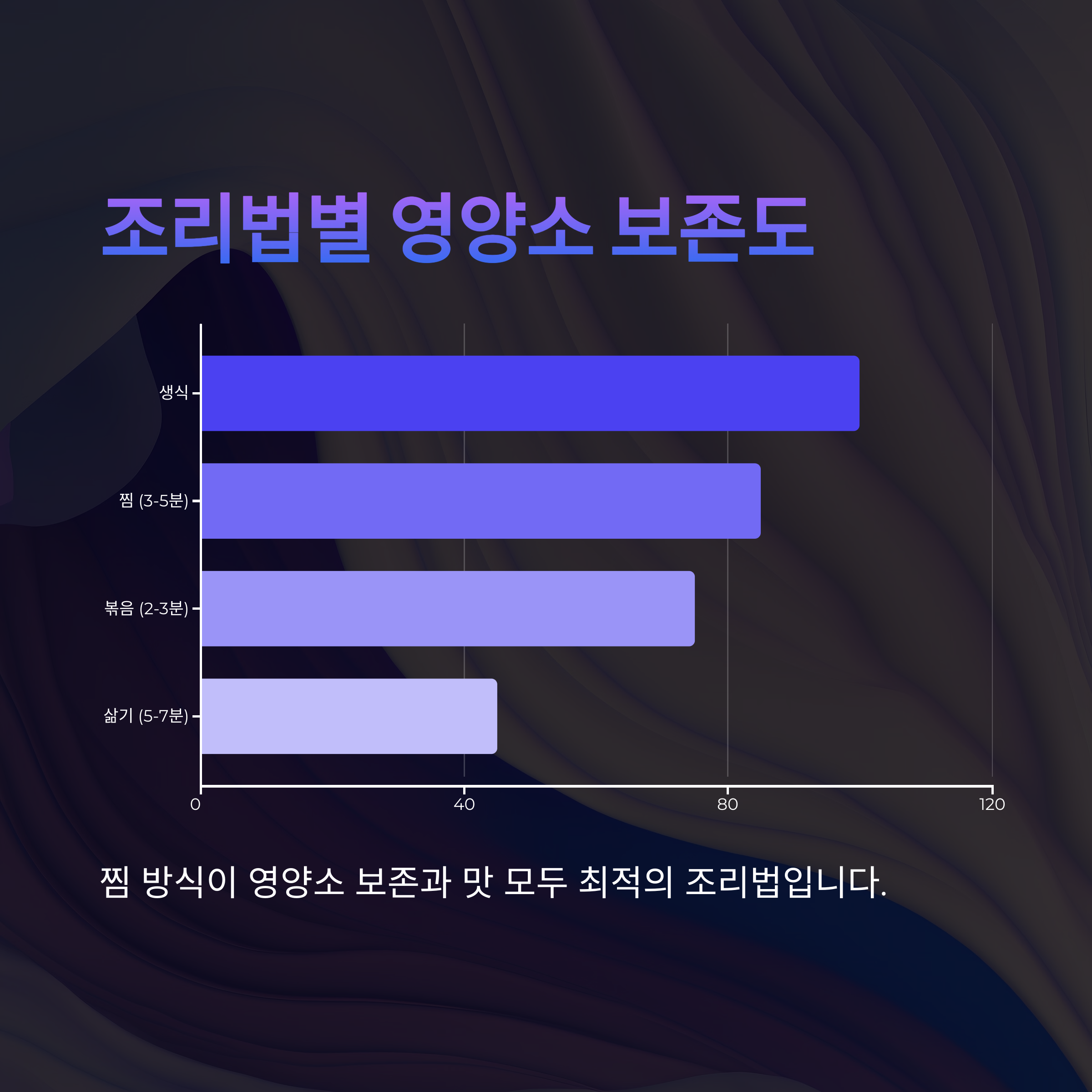 | 찜 (3-5분) | 85% | ⭐⭐⭐⭐ | ⭐⭐⭐⭐⭐ |